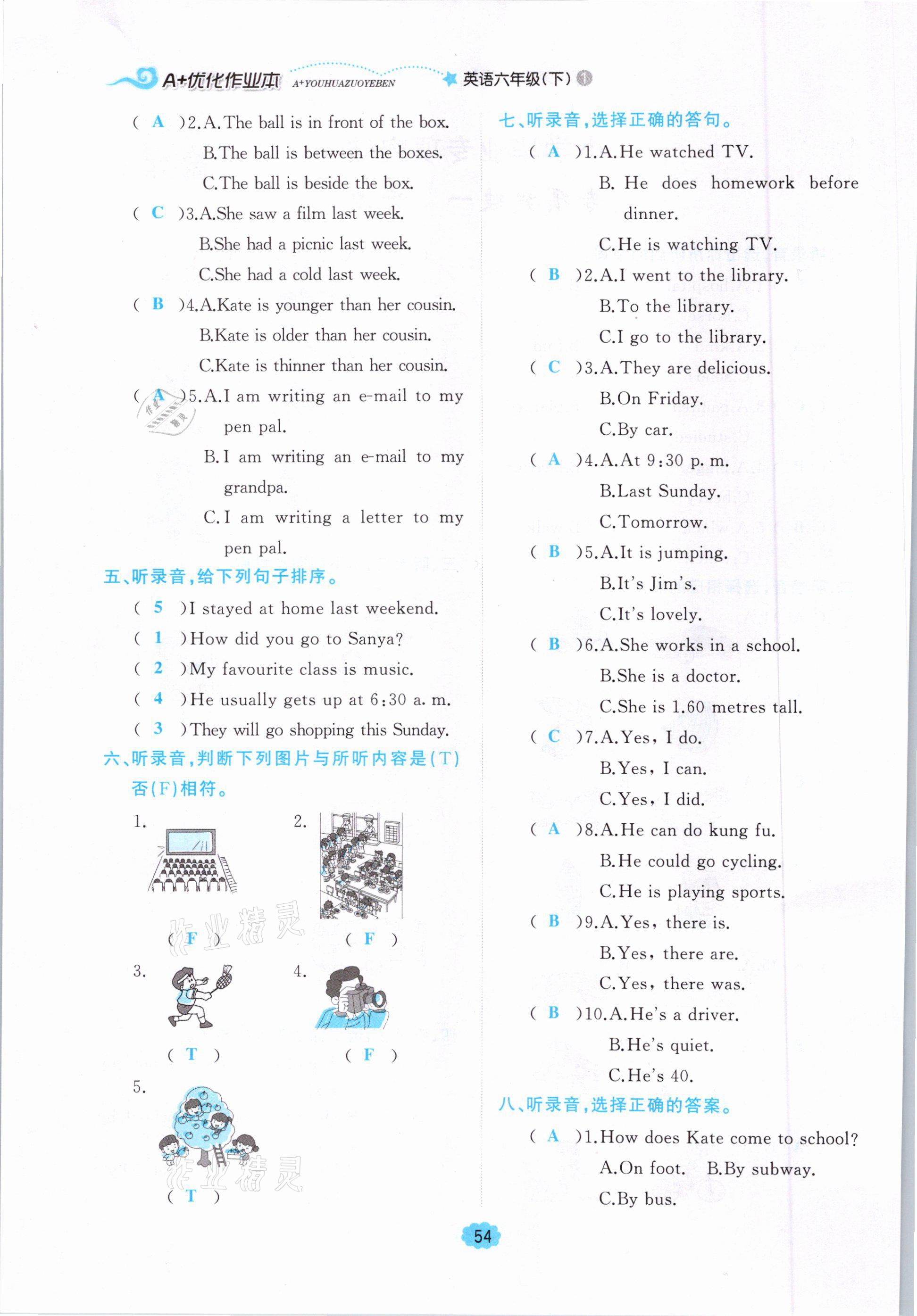 注:目前有些书本章节名称可能整理的还不是很完善,但都是按照顺序排列的,请同学们按照顺序仔细查找。练习册 2021年A加优化作业本六年级英语下册人教PEP版江西专版 答案主要是用来给同学们做完题方便对答案用的,请勿直接抄袭。
