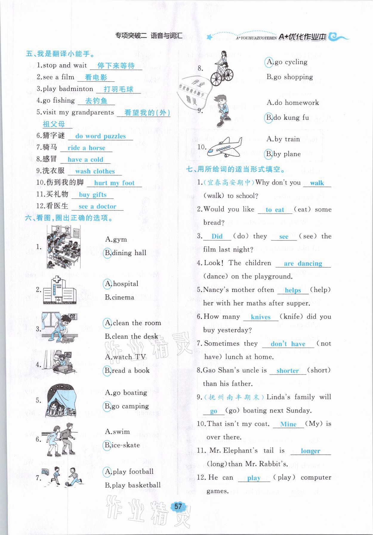 注:目前有些书本章节名称可能整理的还不是很完善,但都是按照顺序排列的,请同学们按照顺序仔细查找。练习册 2021年A加优化作业本六年级英语下册人教PEP版江西专版 答案主要是用来给同学们做完题方便对答案用的,请勿直接抄袭。