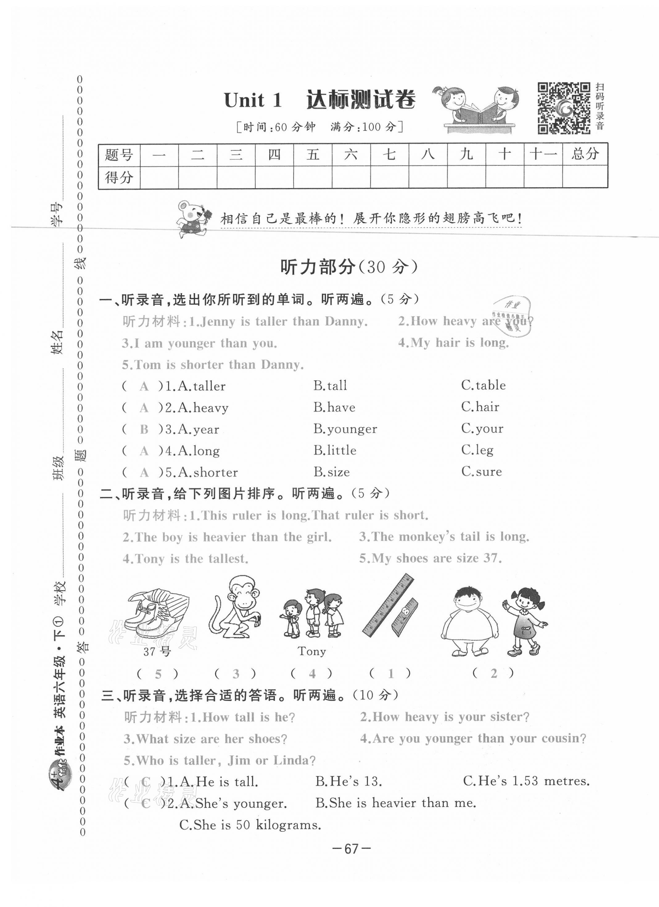 注:目前有些书本章节名称可能整理的还不是很完善,但都是按照顺序排列的,请同学们按照顺序仔细查找。练习册 2021年A加优化作业本六年级英语下册人教PEP版江西专版 答案主要是用来给同学们做完题方便对答案用的,请勿直接抄袭。