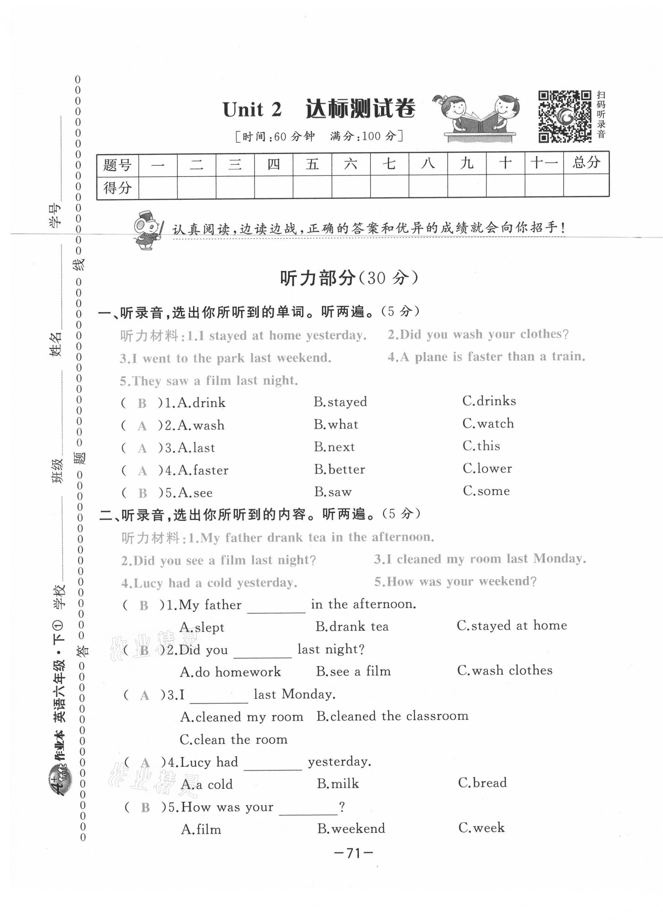 注:目前有些书本章节名称可能整理的还不是很完善,但都是按照顺序排列的,请同学们按照顺序仔细查找。练习册 2021年A加优化作业本六年级英语下册人教PEP版江西专版 答案主要是用来给同学们做完题方便对答案用的,请勿直接抄袭。