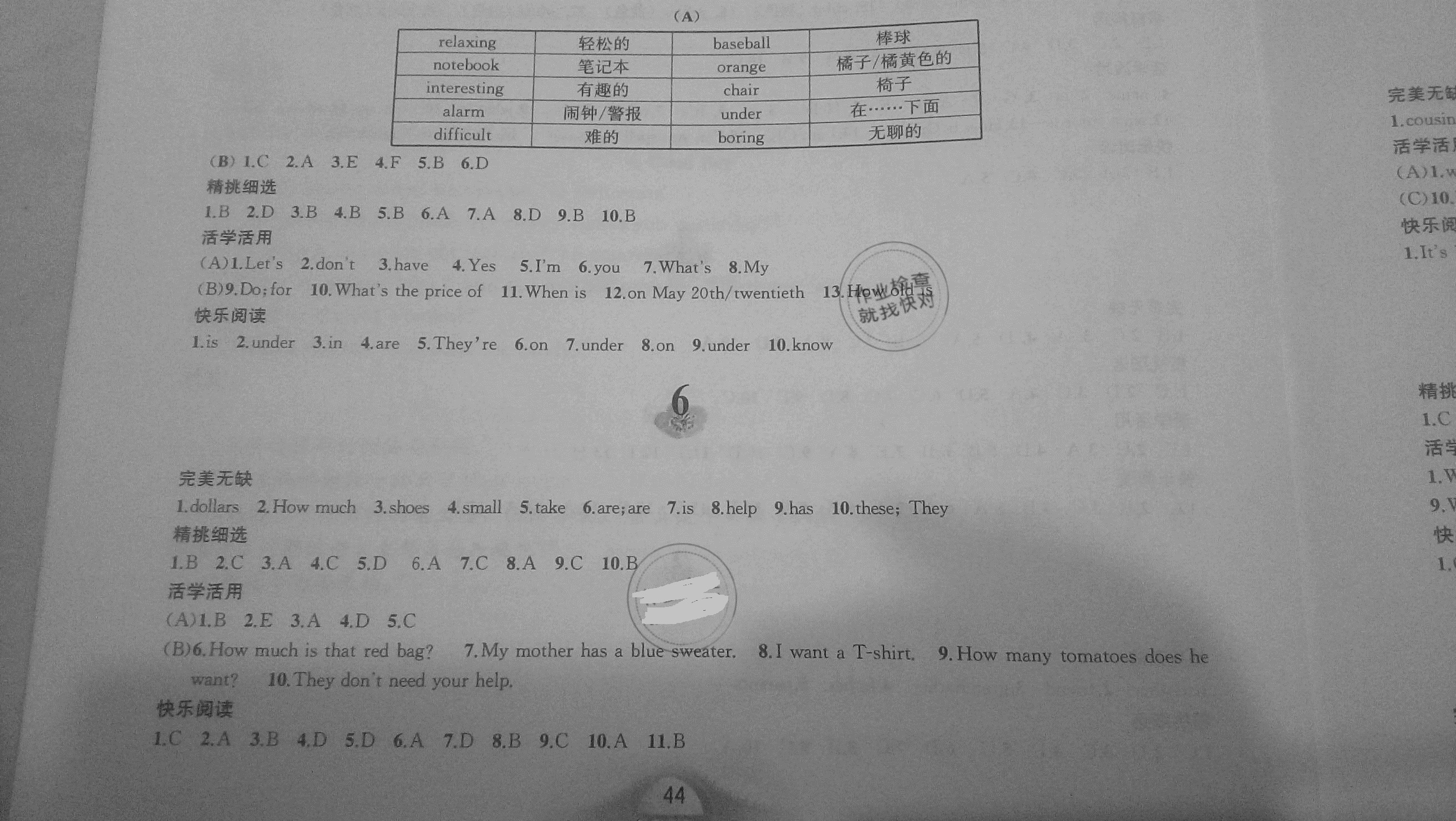 注:目前有些书本章节名称可能整理的还不是很完善,但都是按照顺序排列的,请同学们按照顺序仔细查找。练习册 2021年寒假作业黄山书社七年级英语寒假作业人教版 答案主要是用来给同学们做完题方便对答案用的,请勿直接抄袭。