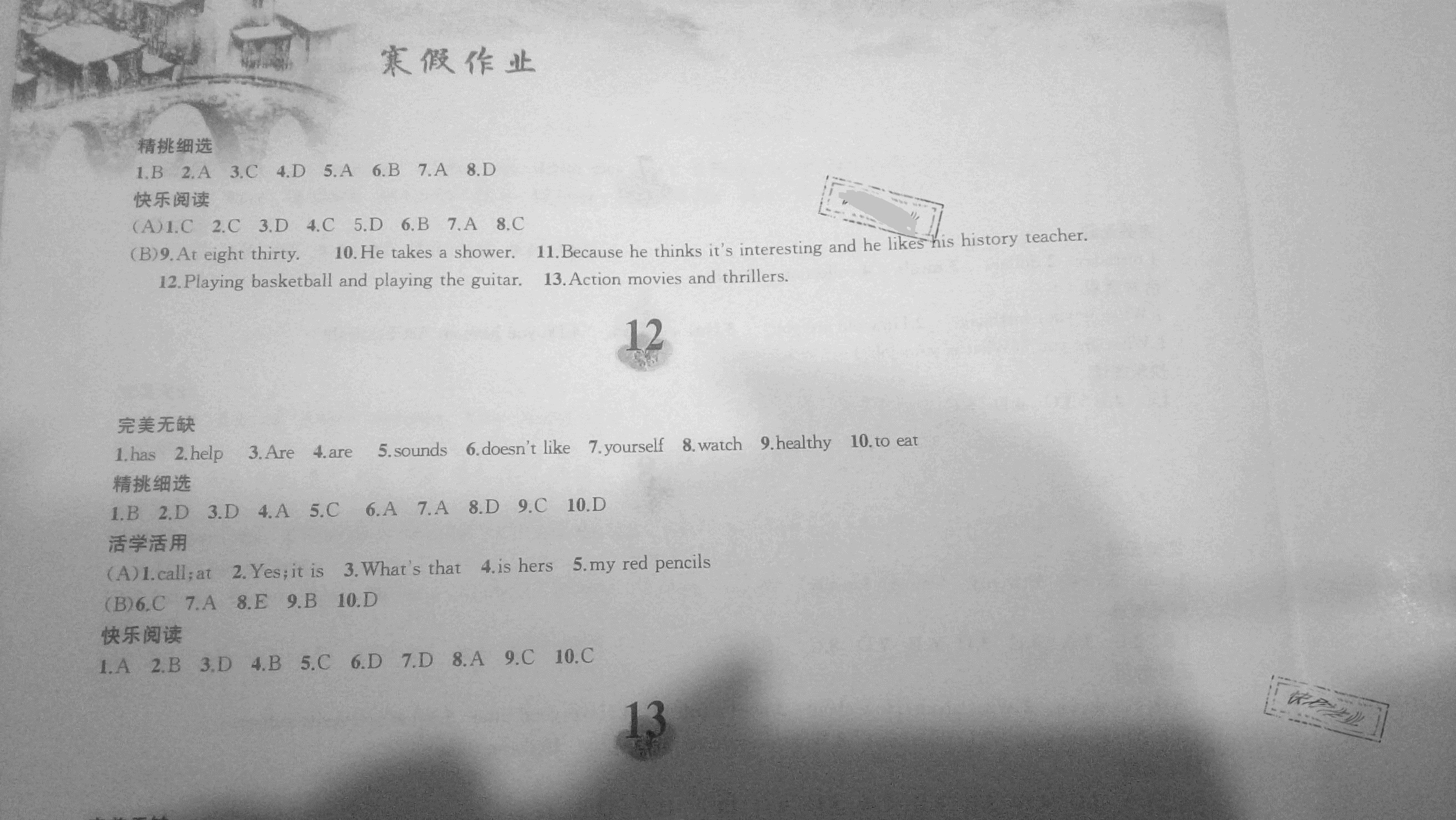 注:目前有些书本章节名称可能整理的还不是很完善,但都是按照顺序排列的,请同学们按照顺序仔细查找。练习册 2021年寒假作业黄山书社七年级英语寒假作业人教版 答案主要是用来给同学们做完题方便对答案用的,请勿直接抄袭。