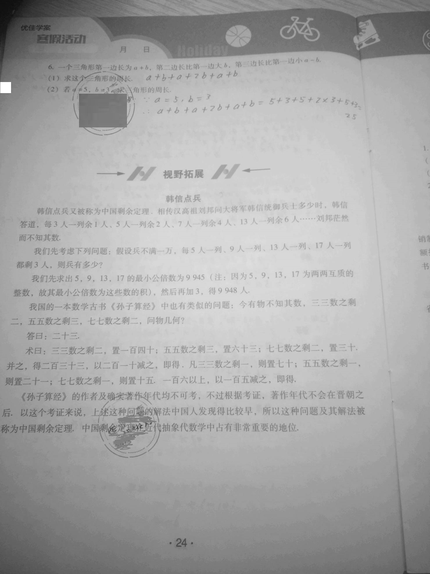 注:目前有些书本章节名称可能整理的还不是很完善,但都是按照顺序排列的,请同学们按照顺序仔细查找。练习册 2021年优佳学案寒假活动七年级数学人教版 答案主要是用来给同学们做完题方便对答案用的,请勿直接抄袭。