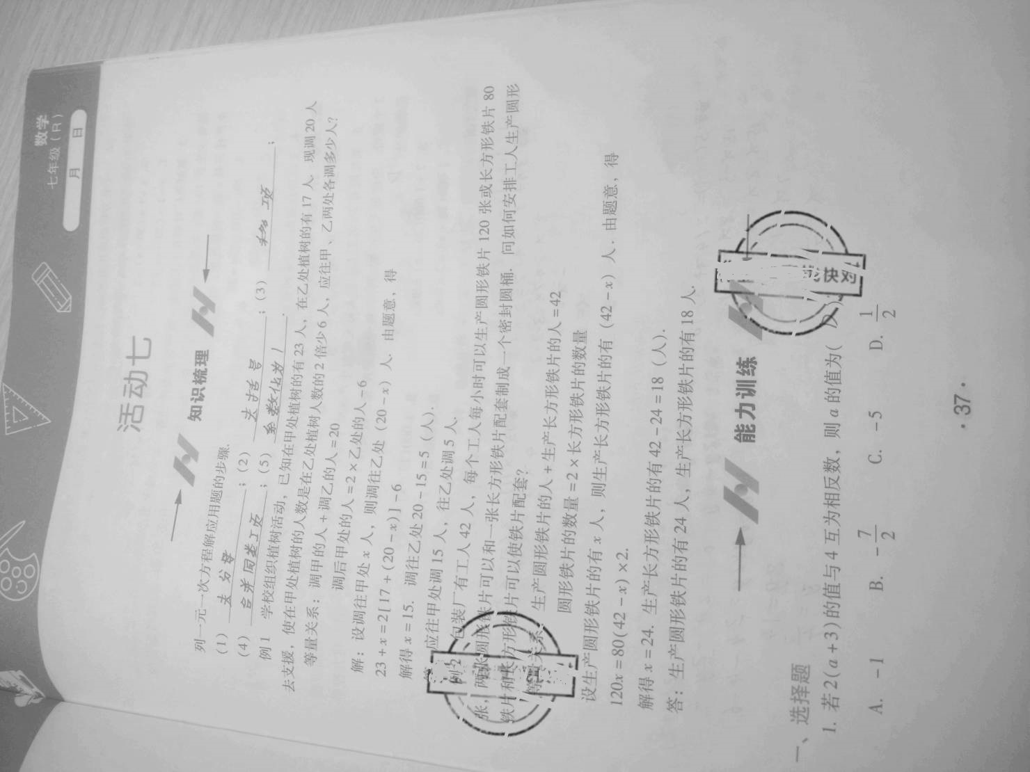 注:目前有些书本章节名称可能整理的还不是很完善,但都是按照顺序排列的,请同学们按照顺序仔细查找。练习册 2021年优佳学案寒假活动七年级数学人教版 答案主要是用来给同学们做完题方便对答案用的,请勿直接抄袭。