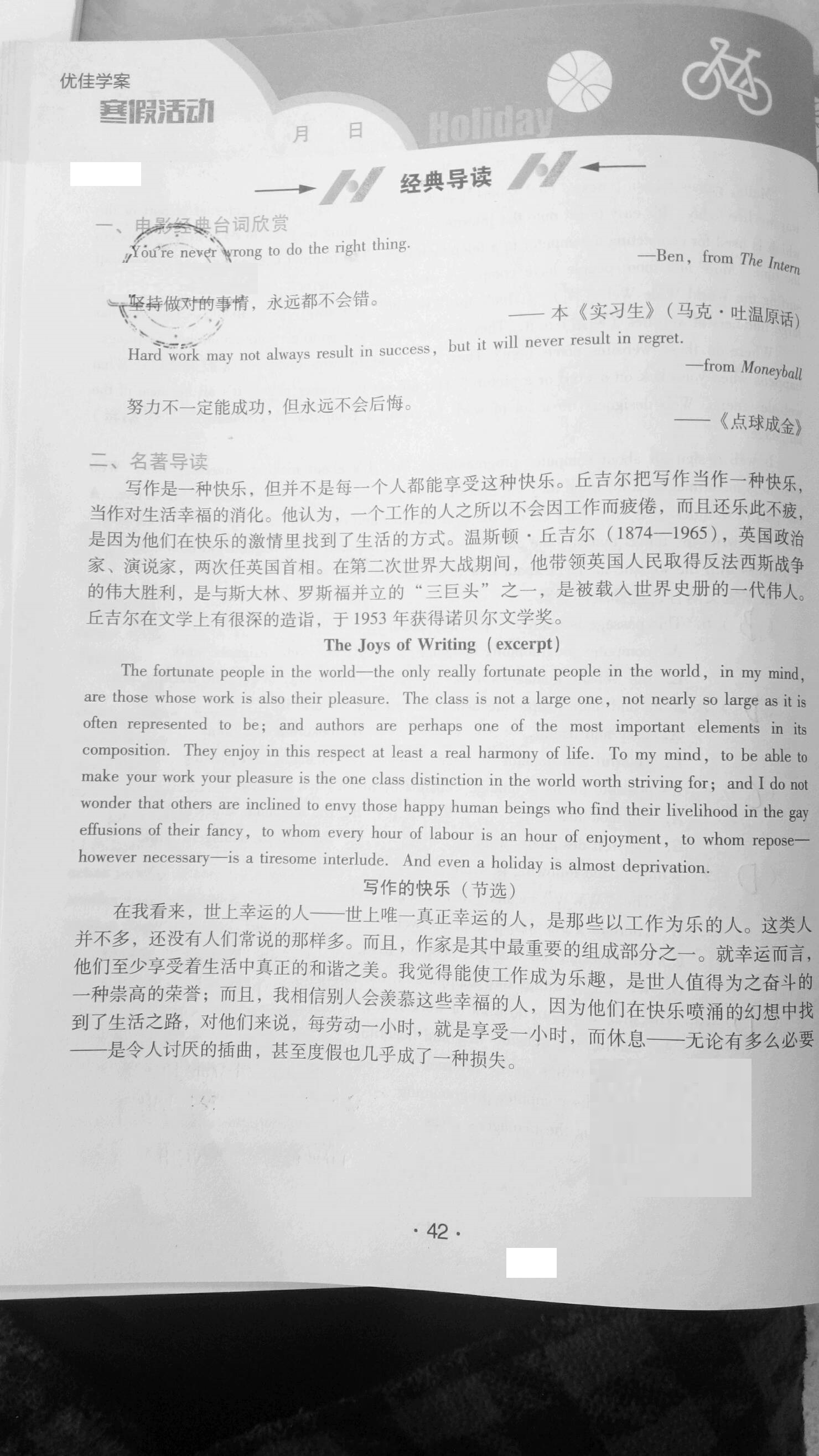 注:目前有些书本章节名称可能整理的还不是很完善,但都是按照顺序排列的,请同学们按照顺序仔细查找。练习册 2021年优佳学案寒假活动八年级英语人教版 答案主要是用来给同学们做完题方便对答案用的,请勿直接抄袭。