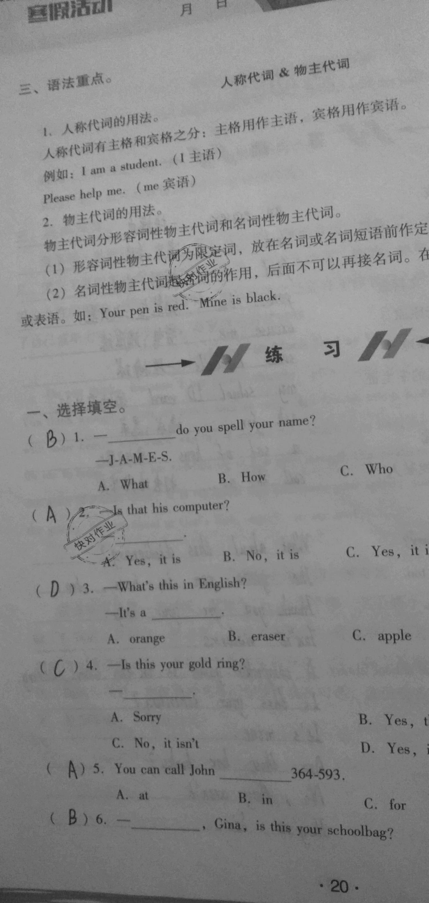 注:目前有些书本章节名称可能整理的还不是很完善,但都是按照顺序排列的,请同学们按照顺序仔细查找。练习册 2021年优佳学案寒假活动七年级英语人教版 答案主要是用来给同学们做完题方便对答案用的,请勿直接抄袭。