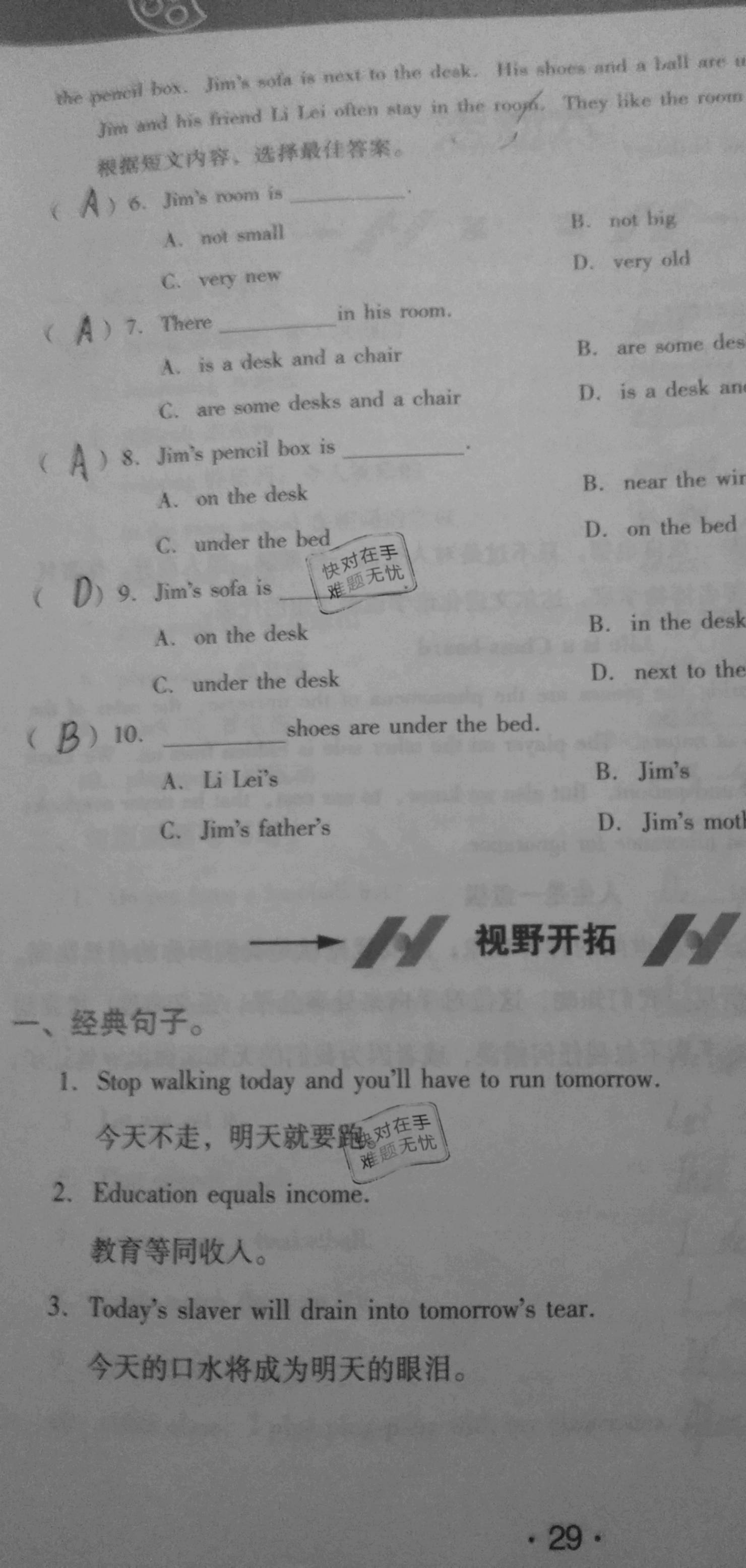 注:目前有些书本章节名称可能整理的还不是很完善,但都是按照顺序排列的,请同学们按照顺序仔细查找。练习册 2021年优佳学案寒假活动七年级英语人教版 答案主要是用来给同学们做完题方便对答案用的,请勿直接抄袭。