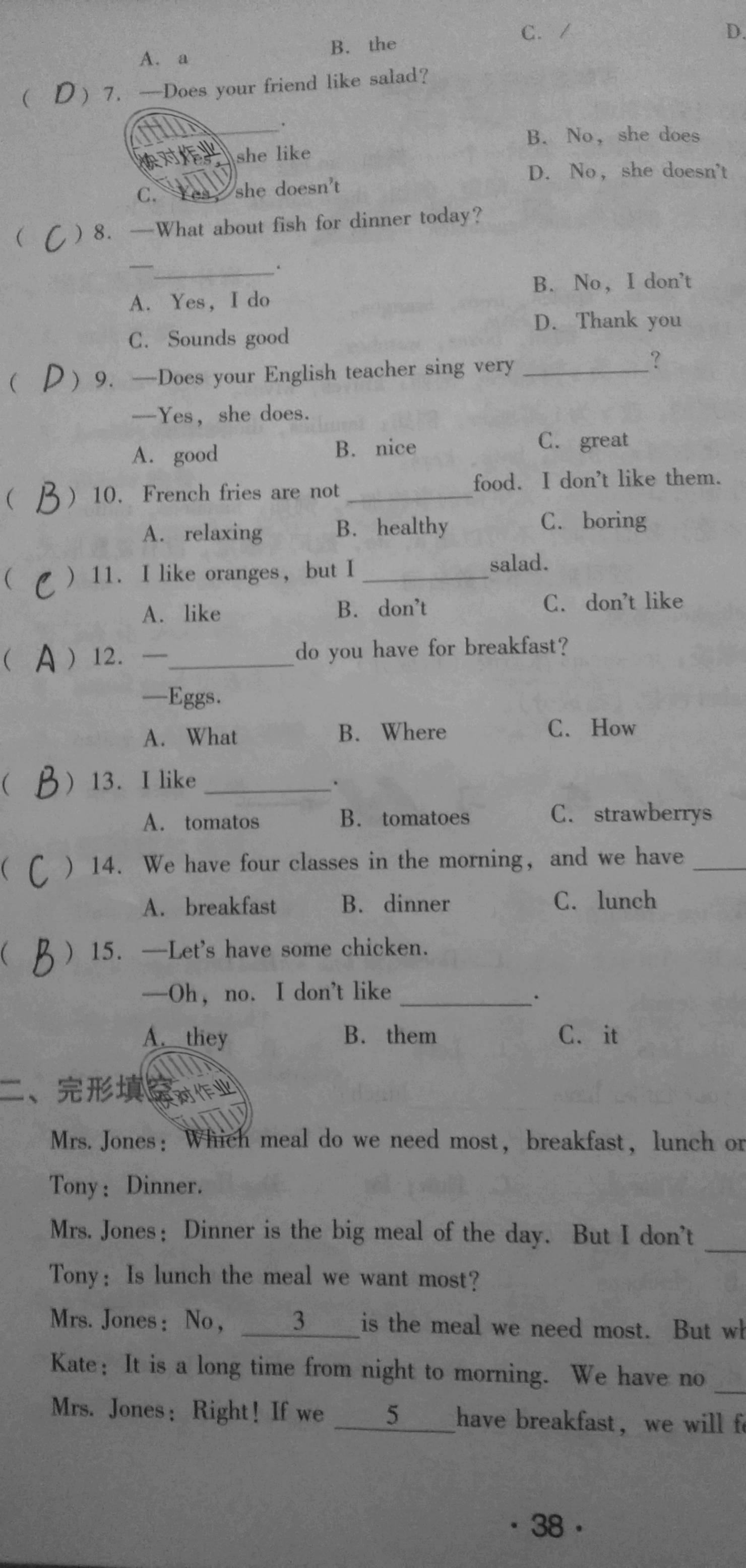 注:目前有些书本章节名称可能整理的还不是很完善,但都是按照顺序排列的,请同学们按照顺序仔细查找。练习册 2021年优佳学案寒假活动七年级英语人教版 答案主要是用来给同学们做完题方便对答案用的,请勿直接抄袭。