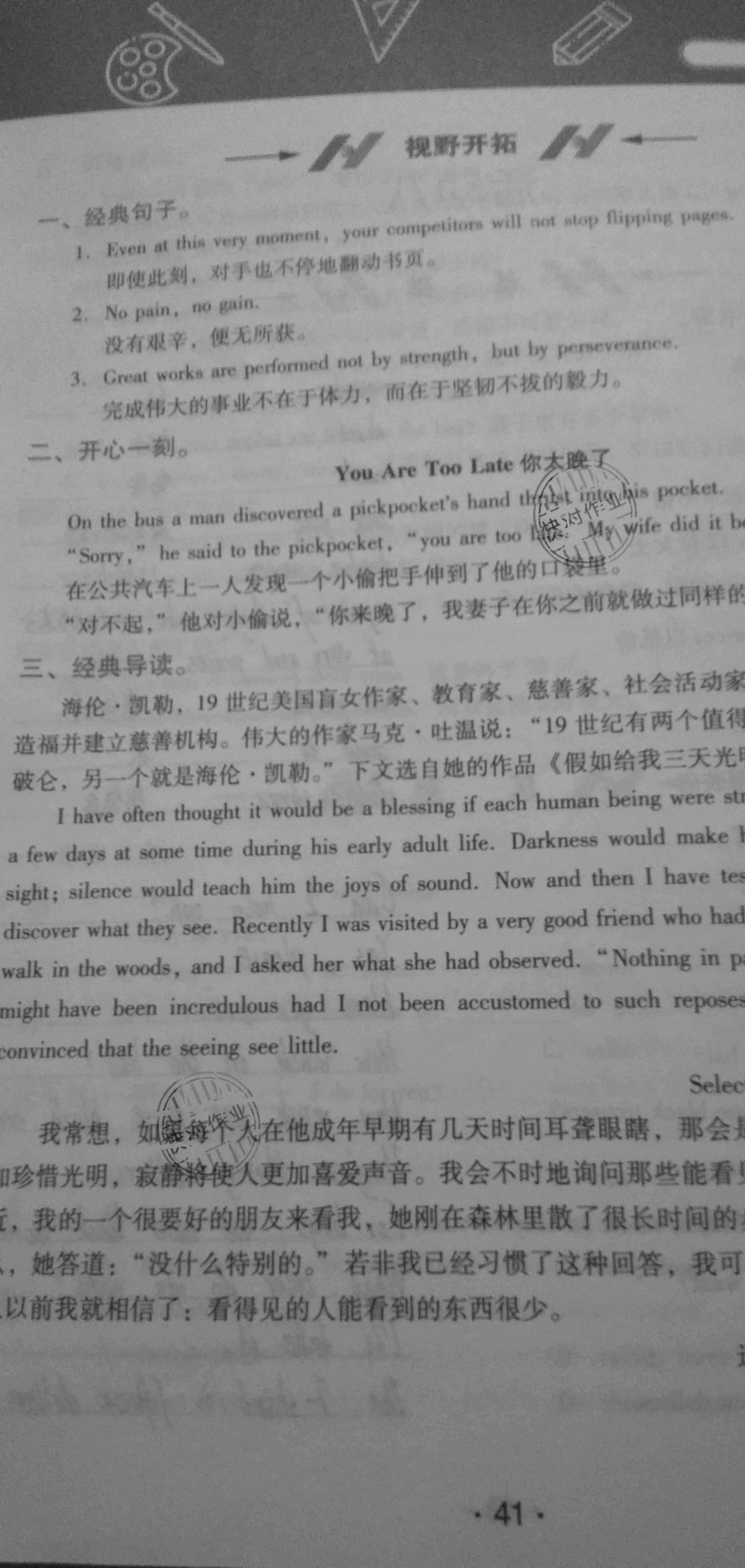 注:目前有些书本章节名称可能整理的还不是很完善,但都是按照顺序排列的,请同学们按照顺序仔细查找。练习册 2021年优佳学案寒假活动七年级英语人教版 答案主要是用来给同学们做完题方便对答案用的,请勿直接抄袭。