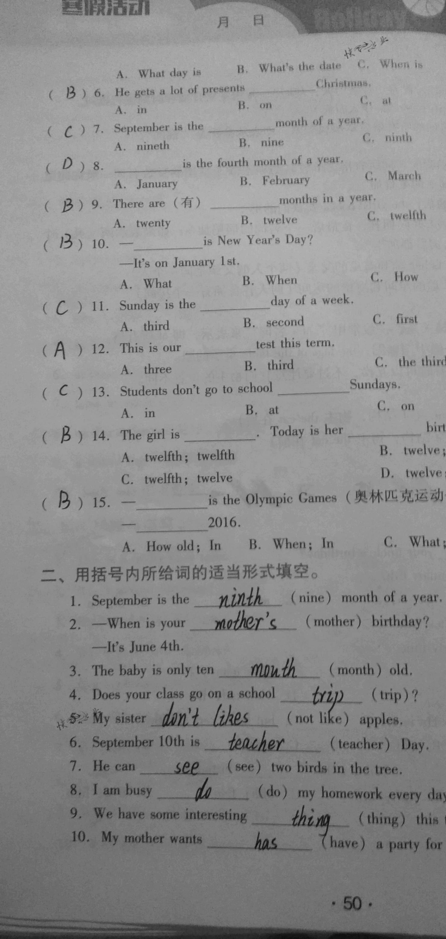 注:目前有些书本章节名称可能整理的还不是很完善,但都是按照顺序排列的,请同学们按照顺序仔细查找。练习册 2021年优佳学案寒假活动七年级英语人教版 答案主要是用来给同学们做完题方便对答案用的,请勿直接抄袭。