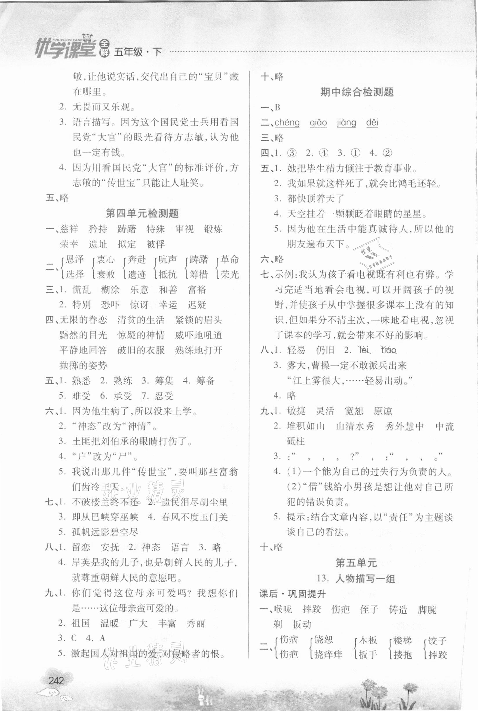 注:目前有些书本章节名称可能整理的还不是很完善,但都是按照顺序排列的,请同学们按照顺序仔细查找。练习册 2021年优学课堂全解五年级语文下册人教版 答案主要是用来给同学们做完题方便对答案用的,请勿直接抄袭。