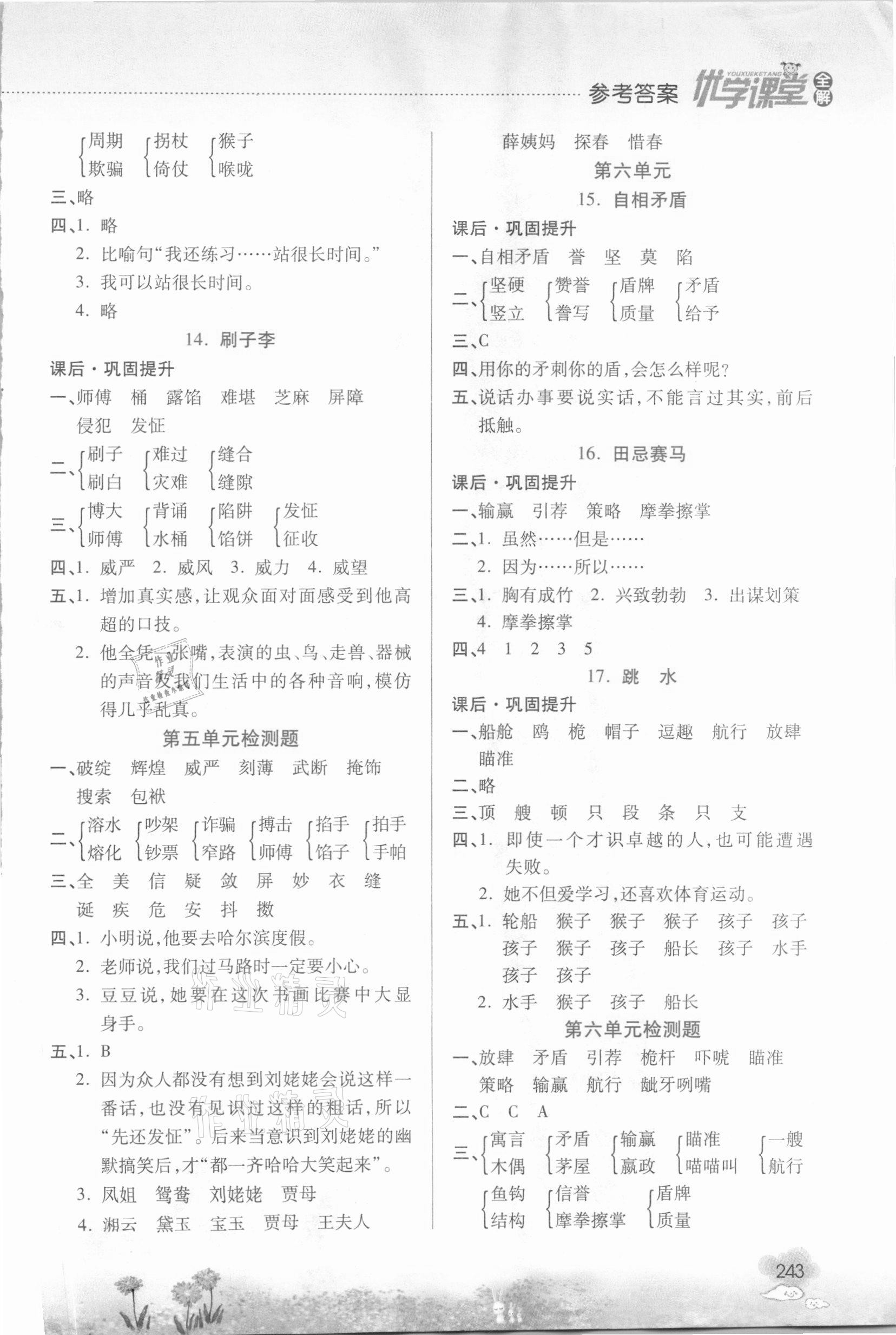 注:目前有些书本章节名称可能整理的还不是很完善,但都是按照顺序排列的,请同学们按照顺序仔细查找。练习册 2021年优学课堂全解五年级语文下册人教版 答案主要是用来给同学们做完题方便对答案用的,请勿直接抄袭。