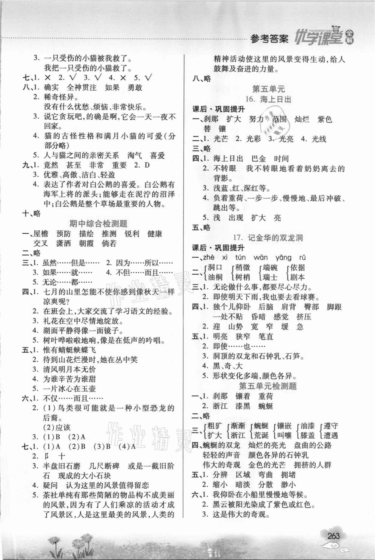注:目前有些书本章节名称可能整理的还不是很完善,但都是按照顺序排列的,请同学们按照顺序仔细查找。练习册 2021年优学课堂全解四年级语文下册人教版 答案主要是用来给同学们做完题方便对答案用的,请勿直接抄袭。