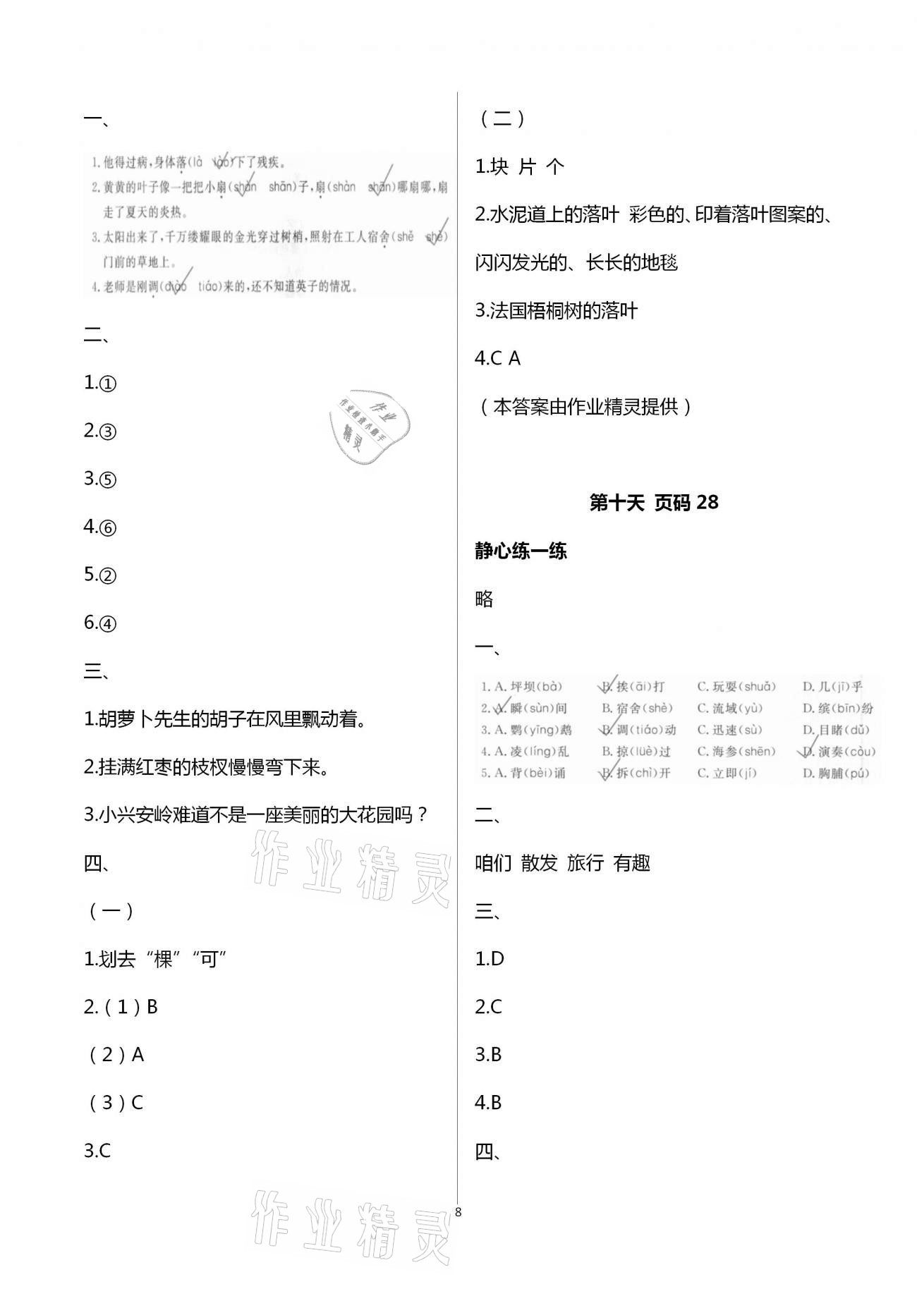 注:目前有些书本章节名称可能整理的还不是很完善,但都是按照顺序排列的,请同学们按照顺序仔细查找。练习册 2021年寒假作业快乐的假日三年级语文 答案主要是用来给同学们做完题方便对答案用的,请勿直接抄袭。