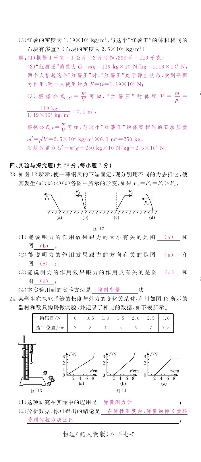2021年领航新课标练习册八年级物理下册人教版