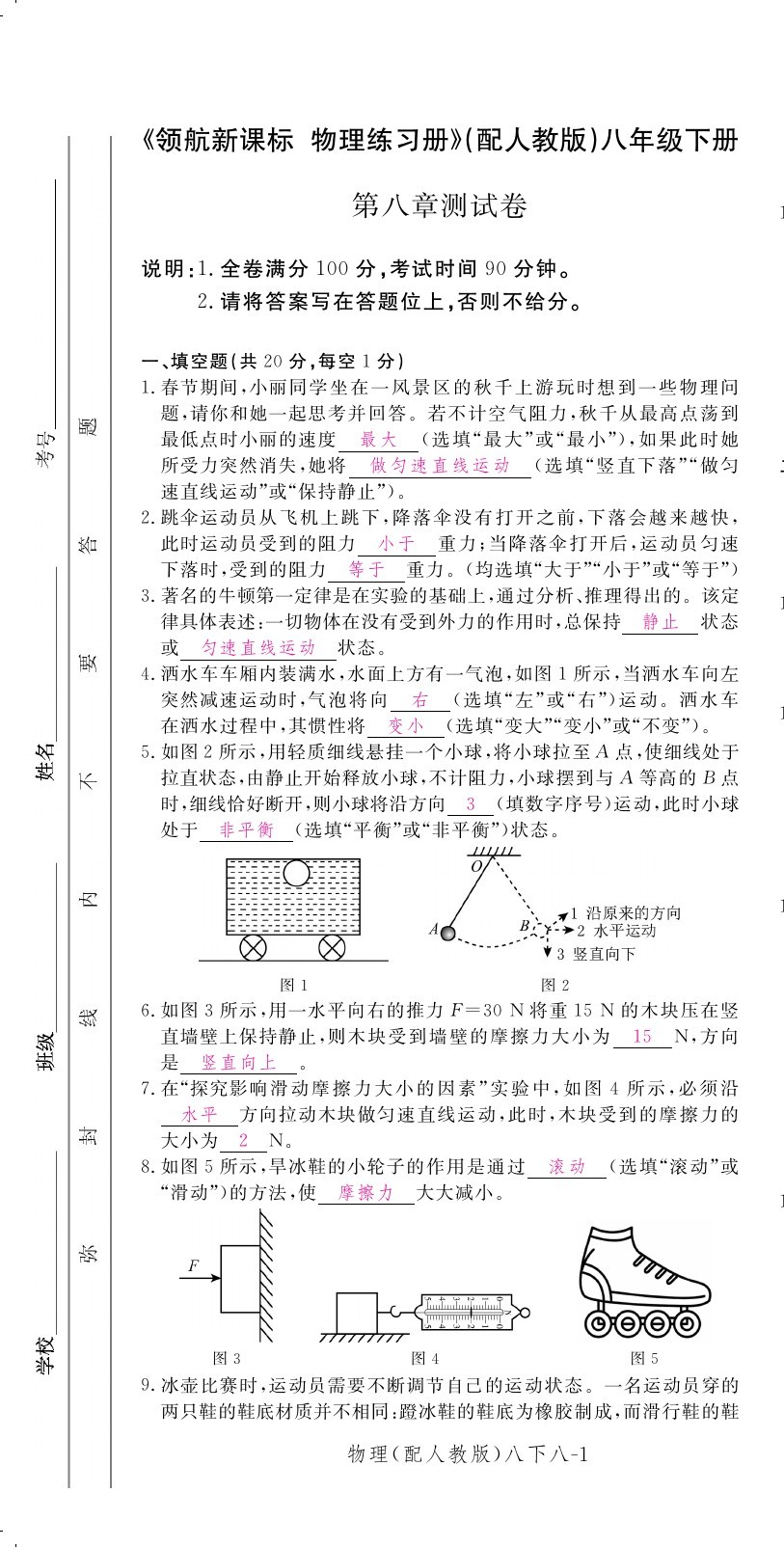 注:目前有些书本章节名称可能整理的还不是很完善,但都是按照顺序排列的,请同学们按照顺序仔细查找。练习册 2021年领航新课标练习册八年级物理下册人教版 答案主要是用来给同学们做完题方便对答案用的,请勿直接抄袭。