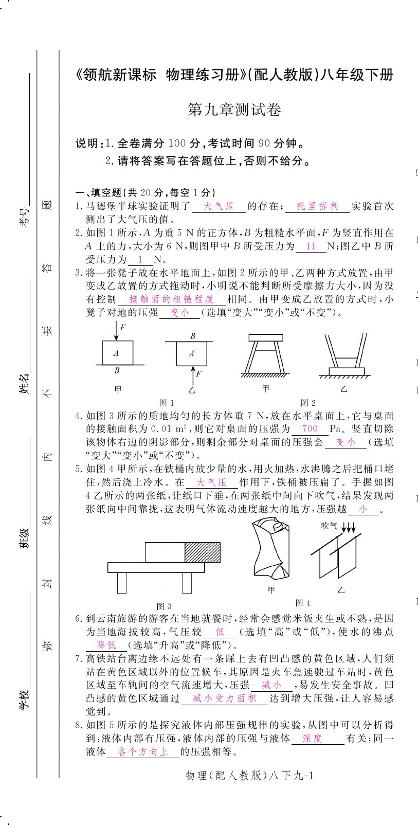 注:目前有些书本章节名称可能整理的还不是很完善,但都是按照顺序排列的,请同学们按照顺序仔细查找。练习册 2021年领航新课标练习册八年级物理下册人教版 答案主要是用来给同学们做完题方便对答案用的,请勿直接抄袭。