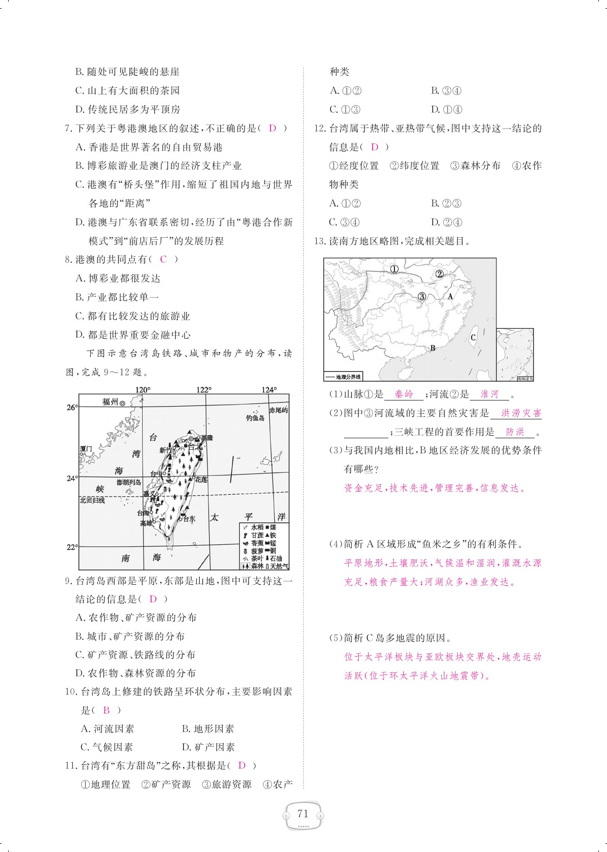 注:目前有些书本章节名称可能整理的还不是很完善,但都是按照顺序排列的,请同学们按照顺序仔细查找。练习册 2021年领航新课标练习册八年级地理下册人教版 答案主要是用来给同学们做完题方便对答案用的,请勿直接抄袭。