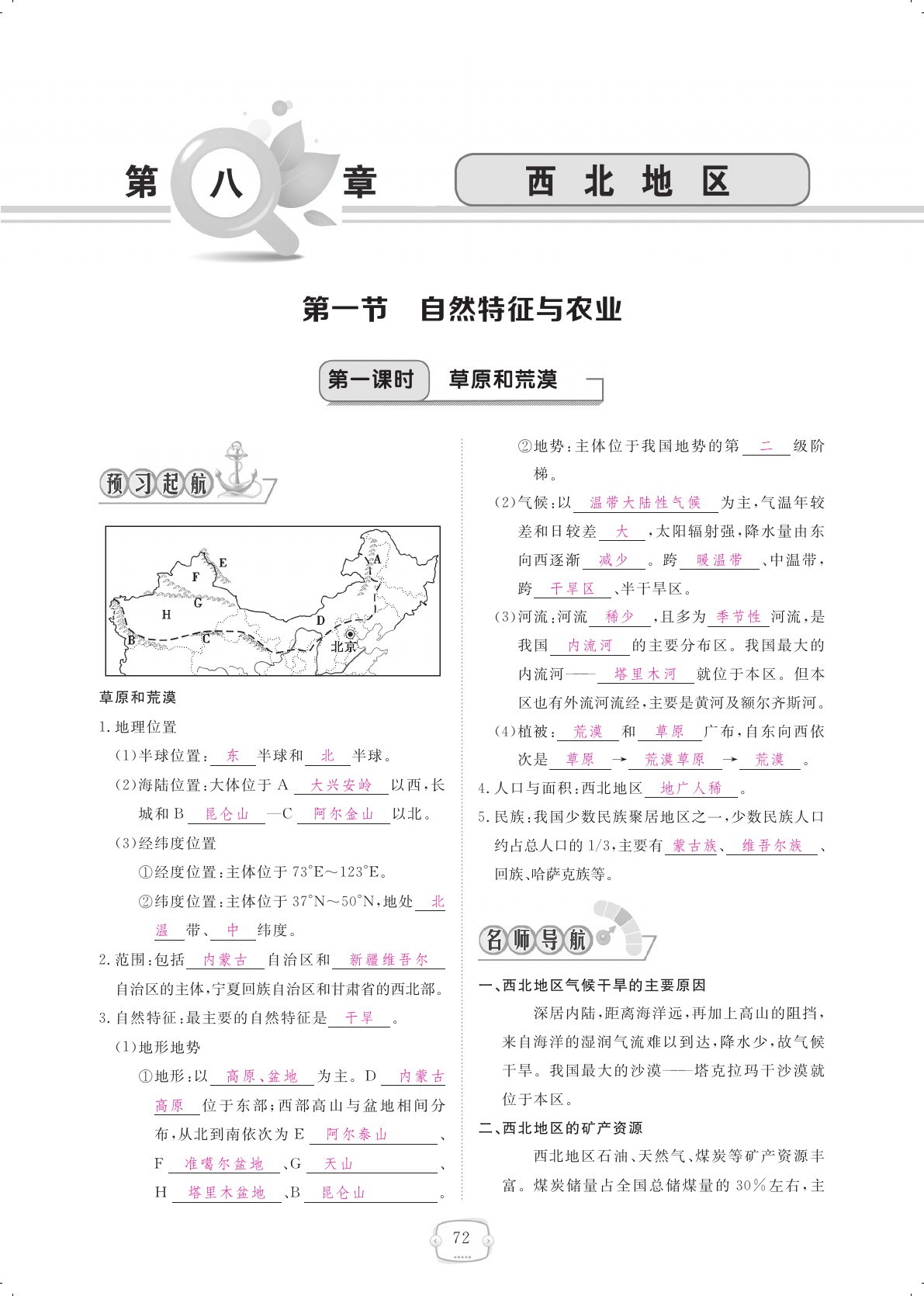 注:目前有些书本章节名称可能整理的还不是很完善,但都是按照顺序排列的,请同学们按照顺序仔细查找。练习册 2021年领航新课标练习册八年级地理下册人教版 答案主要是用来给同学们做完题方便对答案用的,请勿直接抄袭。