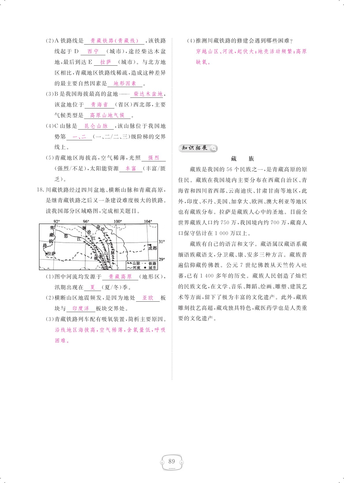 注:目前有些书本章节名称可能整理的还不是很完善,但都是按照顺序排列的,请同学们按照顺序仔细查找。练习册 2021年领航新课标练习册八年级地理下册人教版 答案主要是用来给同学们做完题方便对答案用的,请勿直接抄袭。