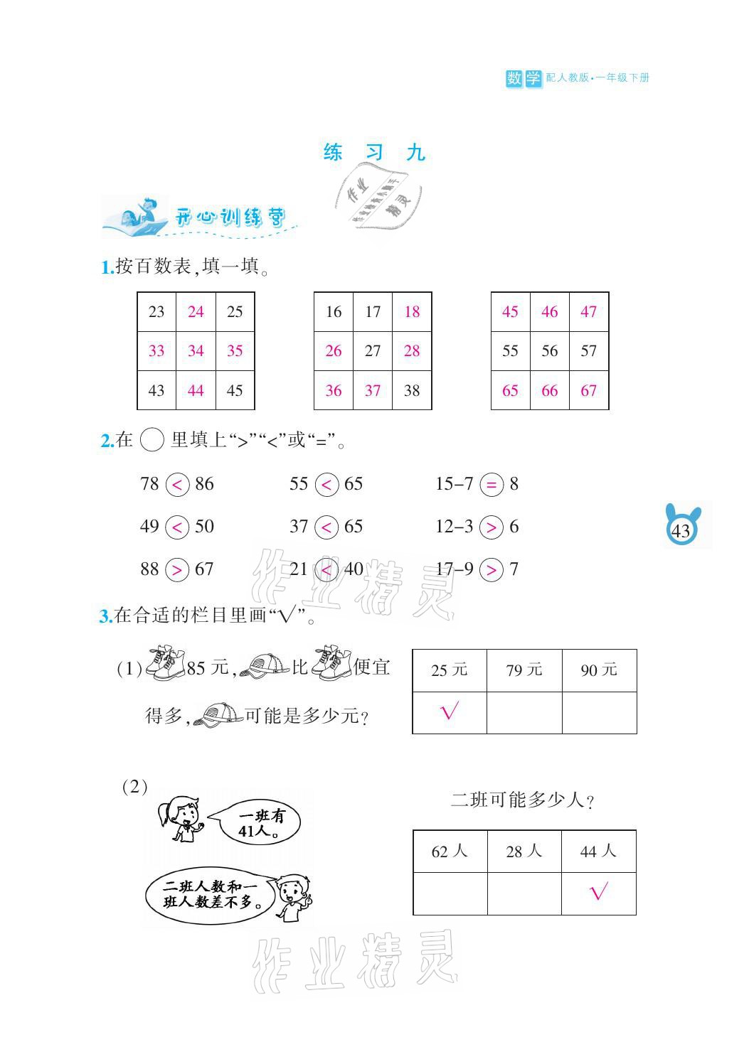 注:目前有些书本章节名称可能整理的还不是很完善,但都是按照顺序排列的,请同学们按照顺序仔细查找。练习册 2021年芝麻开花课程新体验一年级数学下册人教版 答案主要是用来给同学们做完题方便对答案用的,请勿直接抄袭。
