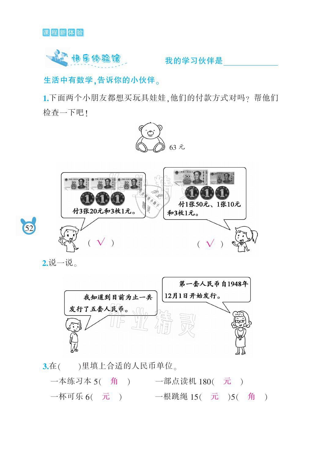 注:目前有些书本章节名称可能整理的还不是很完善,但都是按照顺序排列的,请同学们按照顺序仔细查找。练习册 2021年芝麻开花课程新体验一年级数学下册人教版 答案主要是用来给同学们做完题方便对答案用的,请勿直接抄袭。