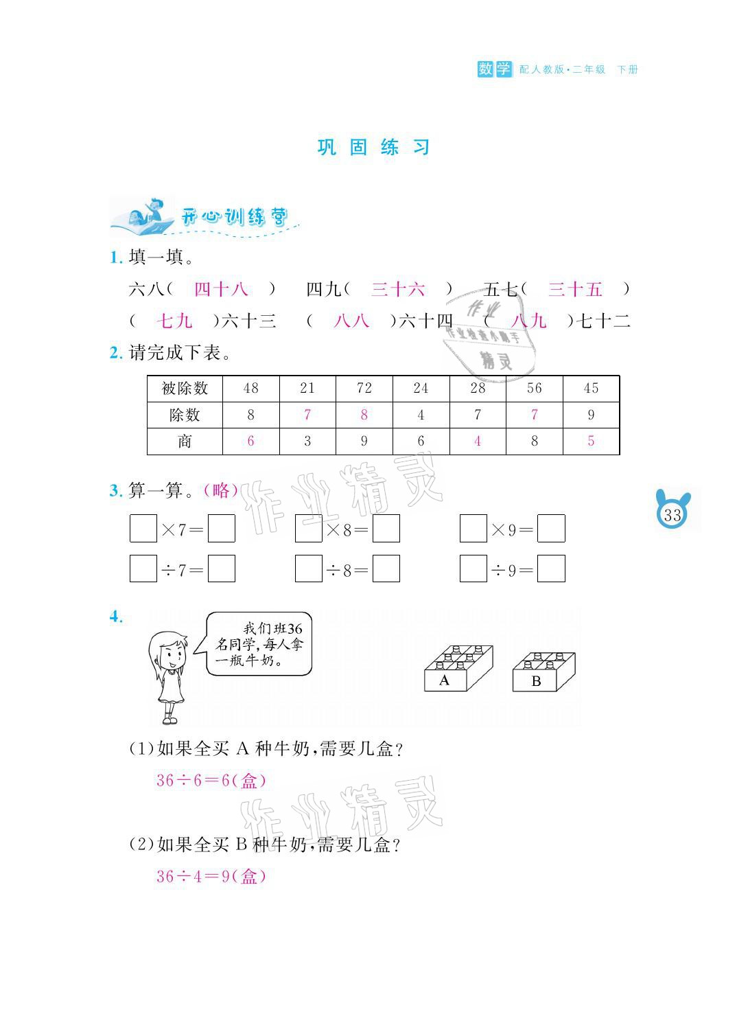 注:目前有些书本章节名称可能整理的还不是很完善,但都是按照顺序排列的,请同学们按照顺序仔细查找。练习册 2021年芝麻开花课程新体验二年级数学下册人教版 答案主要是用来给同学们做完题方便对答案用的,请勿直接抄袭。