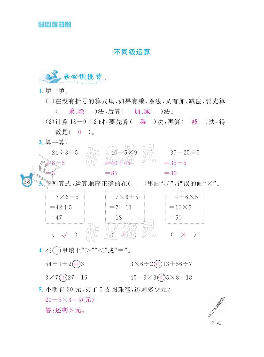 注:目前有些书本章节名称可能整理的还不是很完善,但都是按照顺序排列的,请同学们按照顺序仔细查找。练习册 2021年芝麻开花课程新体验二年级数学下册人教版 答案主要是用来给同学们做完题方便对答案用的,请勿直接抄袭。