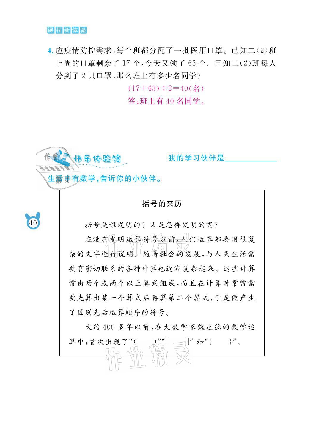 注:目前有些书本章节名称可能整理的还不是很完善,但都是按照顺序排列的,请同学们按照顺序仔细查找。练习册 2021年芝麻开花课程新体验二年级数学下册人教版 答案主要是用来给同学们做完题方便对答案用的,请勿直接抄袭。