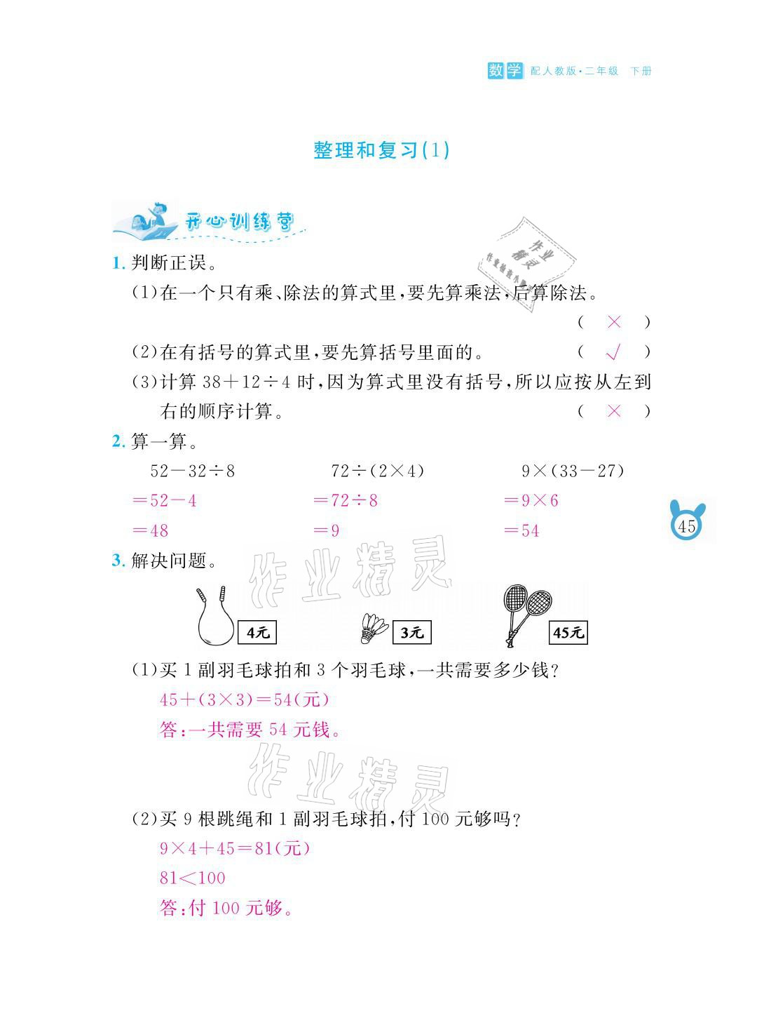 注:目前有些书本章节名称可能整理的还不是很完善,但都是按照顺序排列的,请同学们按照顺序仔细查找。练习册 2021年芝麻开花课程新体验二年级数学下册人教版 答案主要是用来给同学们做完题方便对答案用的,请勿直接抄袭。