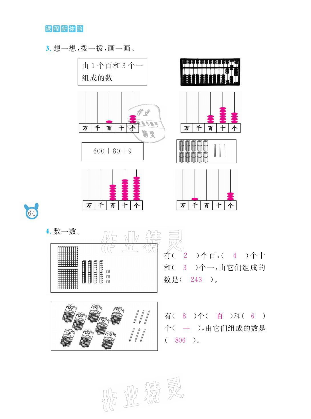 注:目前有些书本章节名称可能整理的还不是很完善,但都是按照顺序排列的,请同学们按照顺序仔细查找。练习册 2021年芝麻开花课程新体验二年级数学下册人教版 答案主要是用来给同学们做完题方便对答案用的,请勿直接抄袭。