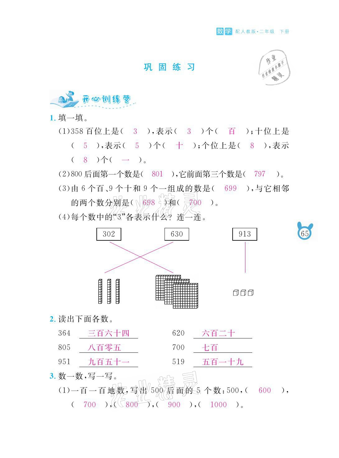 注:目前有些书本章节名称可能整理的还不是很完善,但都是按照顺序排列的,请同学们按照顺序仔细查找。练习册 2021年芝麻开花课程新体验二年级数学下册人教版 答案主要是用来给同学们做完题方便对答案用的,请勿直接抄袭。