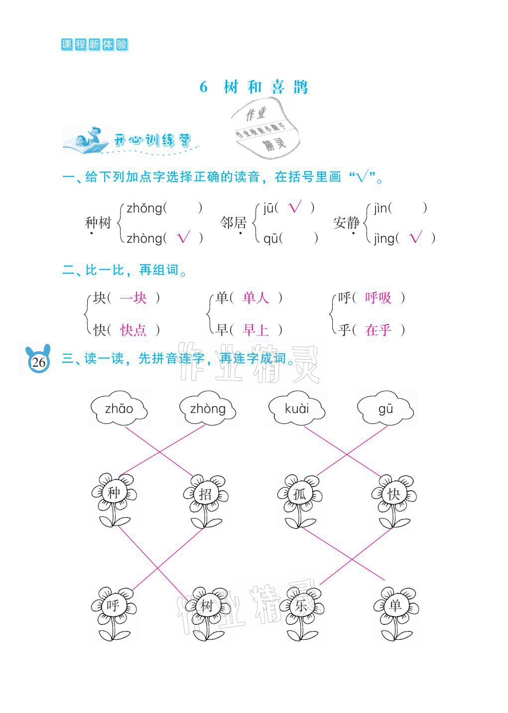 注:目前有些书本章节名称可能整理的还不是很完善,但都是按照顺序排列的,请同学们按照顺序仔细查找。练习册 2021年芝麻开花课程新体验一年级语文下册人教版 答案主要是用来给同学们做完题方便对答案用的,请勿直接抄袭。