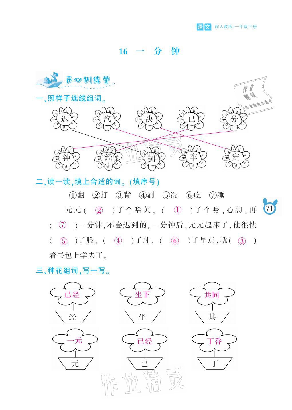 注:目前有些书本章节名称可能整理的还不是很完善,但都是按照顺序排列的,请同学们按照顺序仔细查找。练习册 2021年芝麻开花课程新体验一年级语文下册人教版 答案主要是用来给同学们做完题方便对答案用的,请勿直接抄袭。