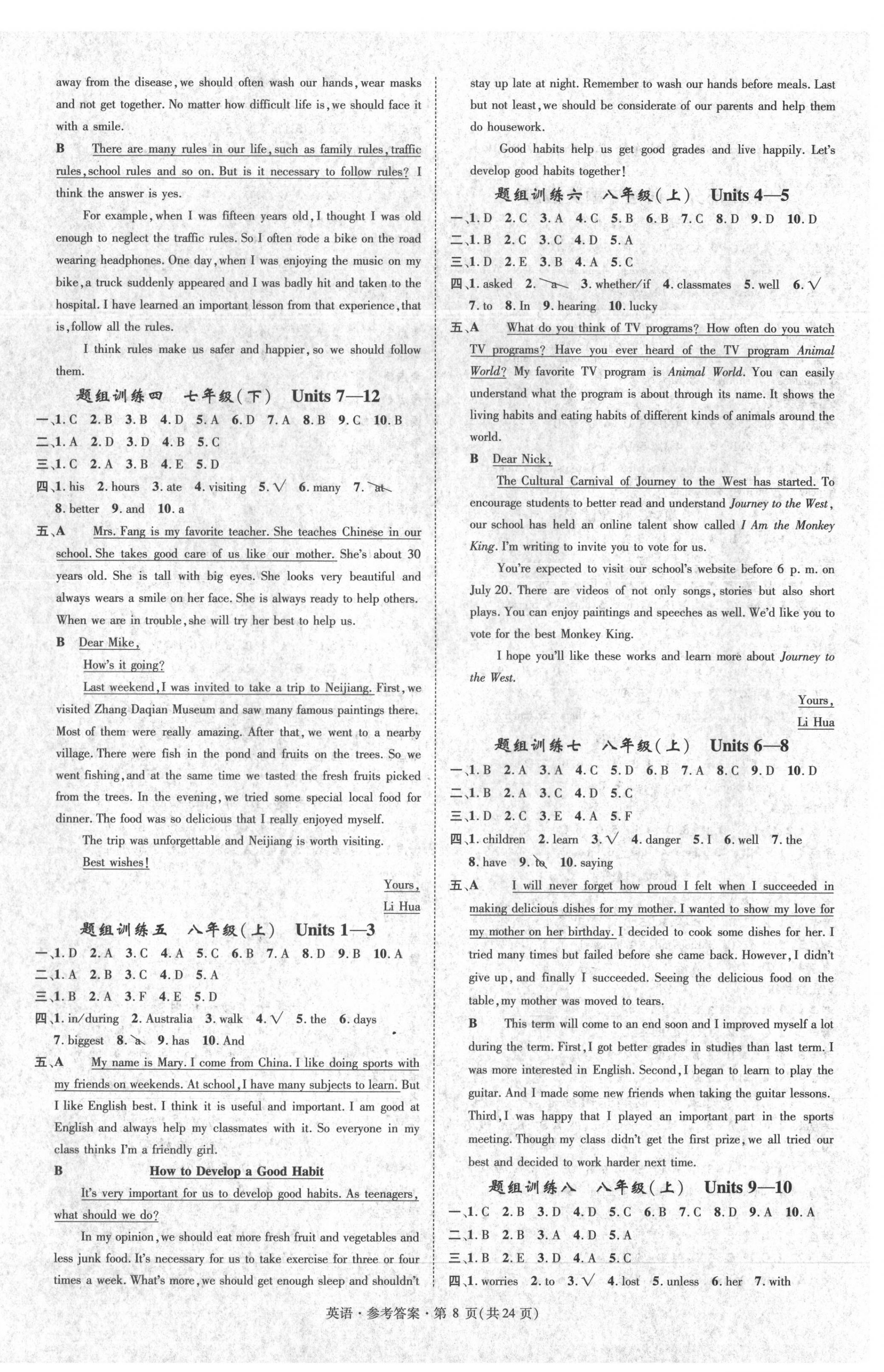 注:目前有些书本章节名称可能整理的还不是很完善,但都是按照顺序排列的,请同学们按照顺序仔细查找。练习册 2021年名师测控中考特训方案英语毕节专版 答案主要是用来给同学们做完题方便对答案用的,请勿直接抄袭。