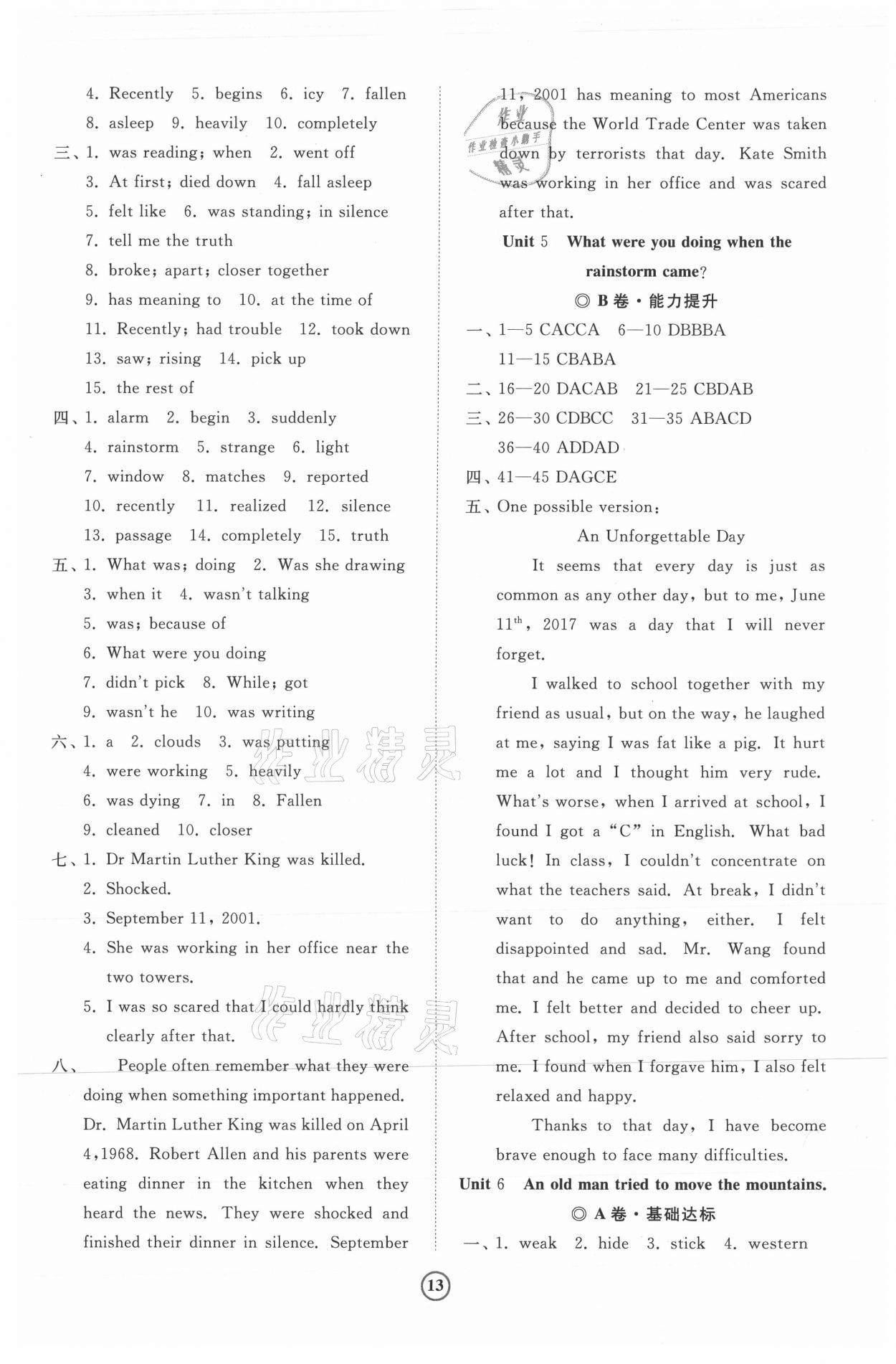 注:目前有些书本章节名称可能整理的还不是很完善,但都是按照顺序排列的,请同学们按照顺序仔细查找。练习册 2021年同步练习册提优测试卷八年级英语下册人教版 答案主要是用来给同学们做完题方便对答案用的,请勿直接抄袭。