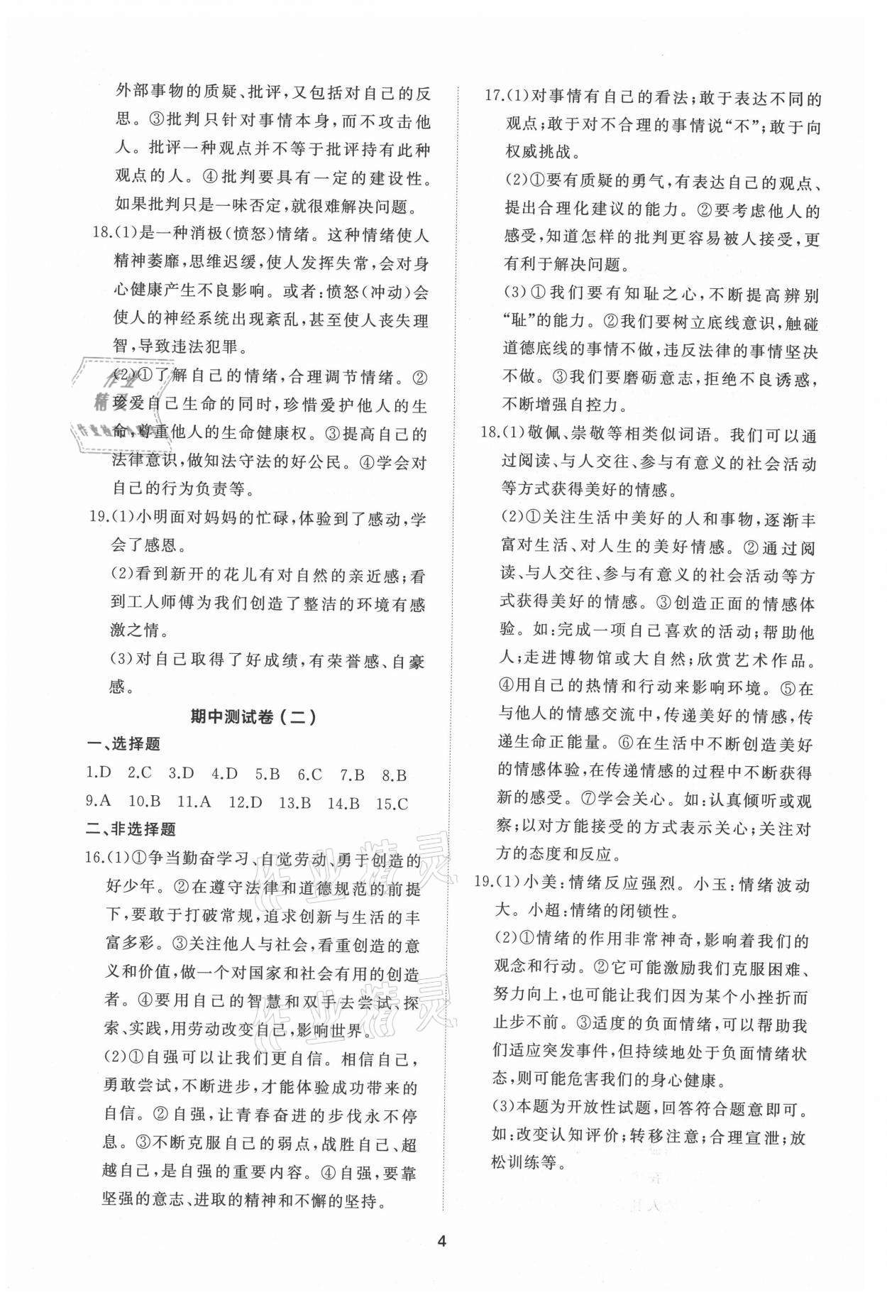 2021年同步练习册提优测试卷七年级道德与法治下册人教版
