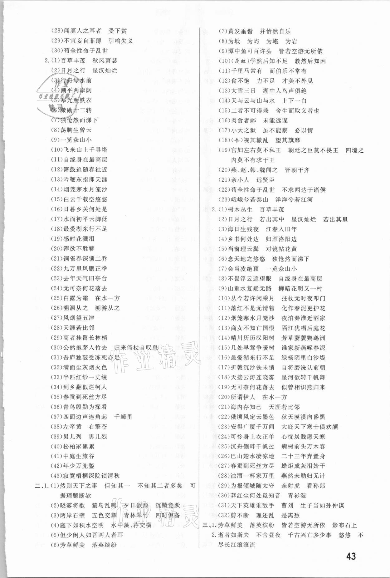 注:目前有些书本章节名称可能整理的还不是很完善,但都是按照顺序排列的,请同学们按照顺序仔细查找。练习册 2021年新一线必刷卷语文 答案主要是用来给同学们做完题方便对答案用的,请勿直接抄袭。