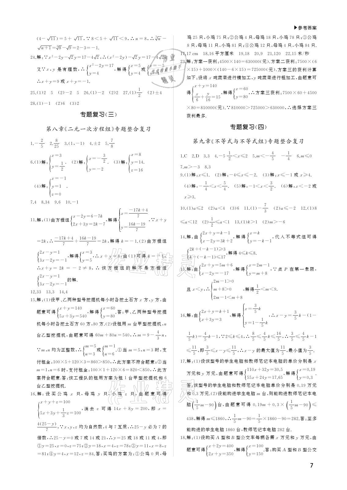 注:目前有些书本章节名称可能整理的还不是很完善,但都是按照顺序排列的,请同学们按照顺序仔细查找。练习册 2021年超越1+1七年级数学下册人教版 答案主要是用来给同学们做完题方便对答案用的,请勿直接抄袭。