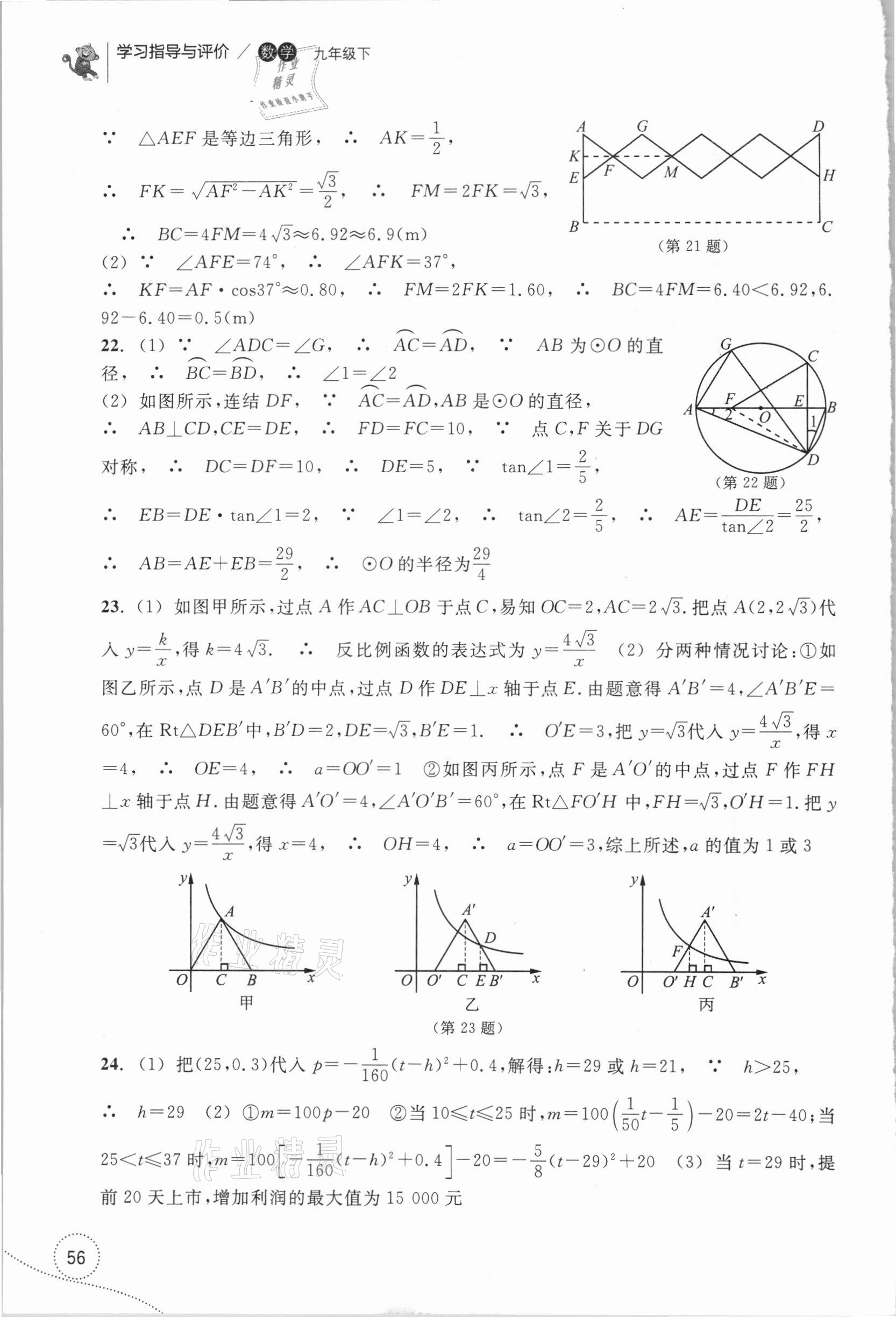 注:目前有些书本章节名称可能整理的还不是很完善,但都是按照顺序排列的,请同学们按照顺序仔细查找。练习册 2021年学习指导与评价九年级数学下册浙教版 答案主要是用来给同学们做完题方便对答案用的,请勿直接抄袭。