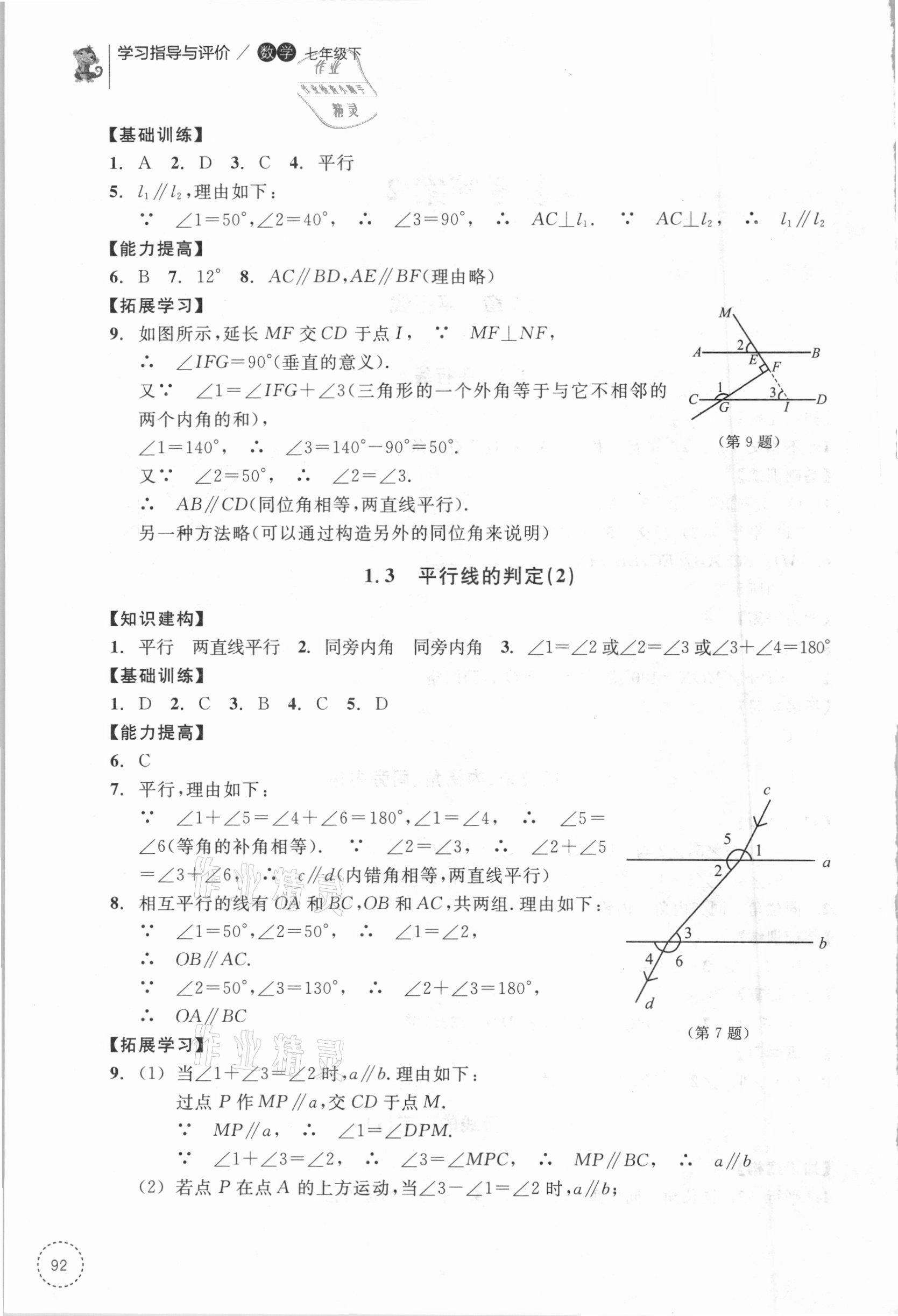 2021年学习指导与评价七年级数学下册浙教版