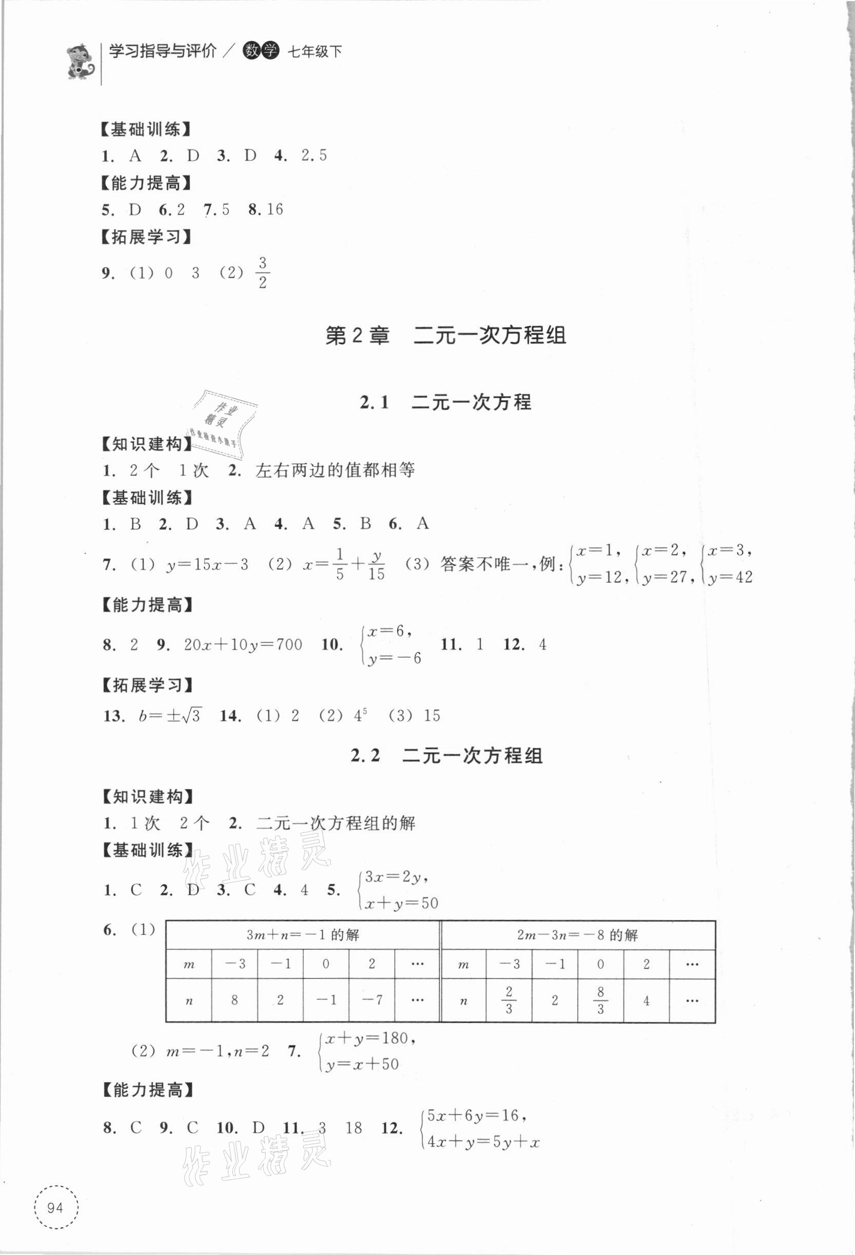 注:目前有些书本章节名称可能整理的还不是很完善,但都是按照顺序排列的,请同学们按照顺序仔细查找。练习册 2021年学习指导与评价七年级数学下册浙教版 答案主要是用来给同学们做完题方便对答案用的,请勿直接抄袭。