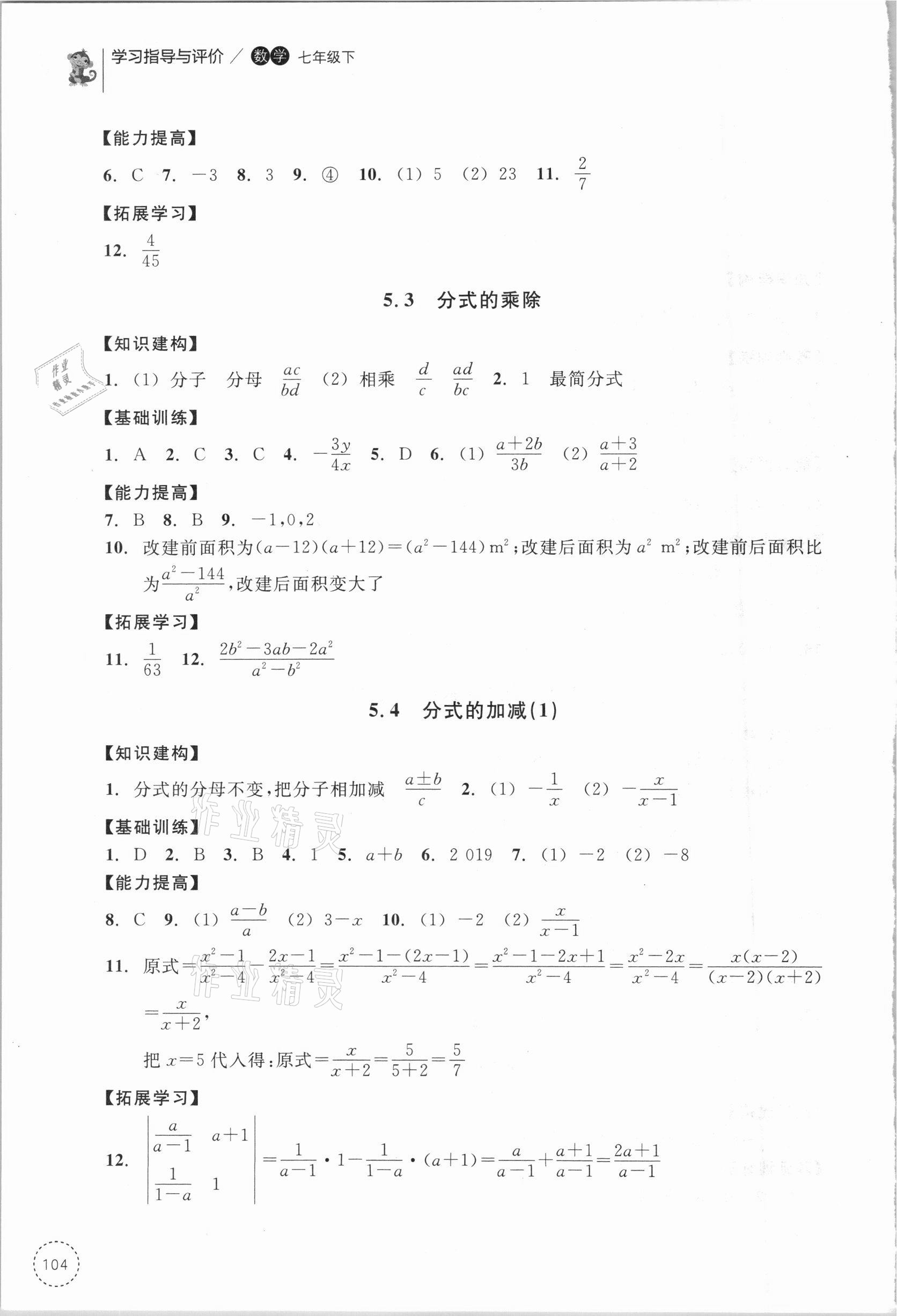 注:目前有些书本章节名称可能整理的还不是很完善,但都是按照顺序排列的,请同学们按照顺序仔细查找。练习册 2021年学习指导与评价七年级数学下册浙教版 答案主要是用来给同学们做完题方便对答案用的,请勿直接抄袭。