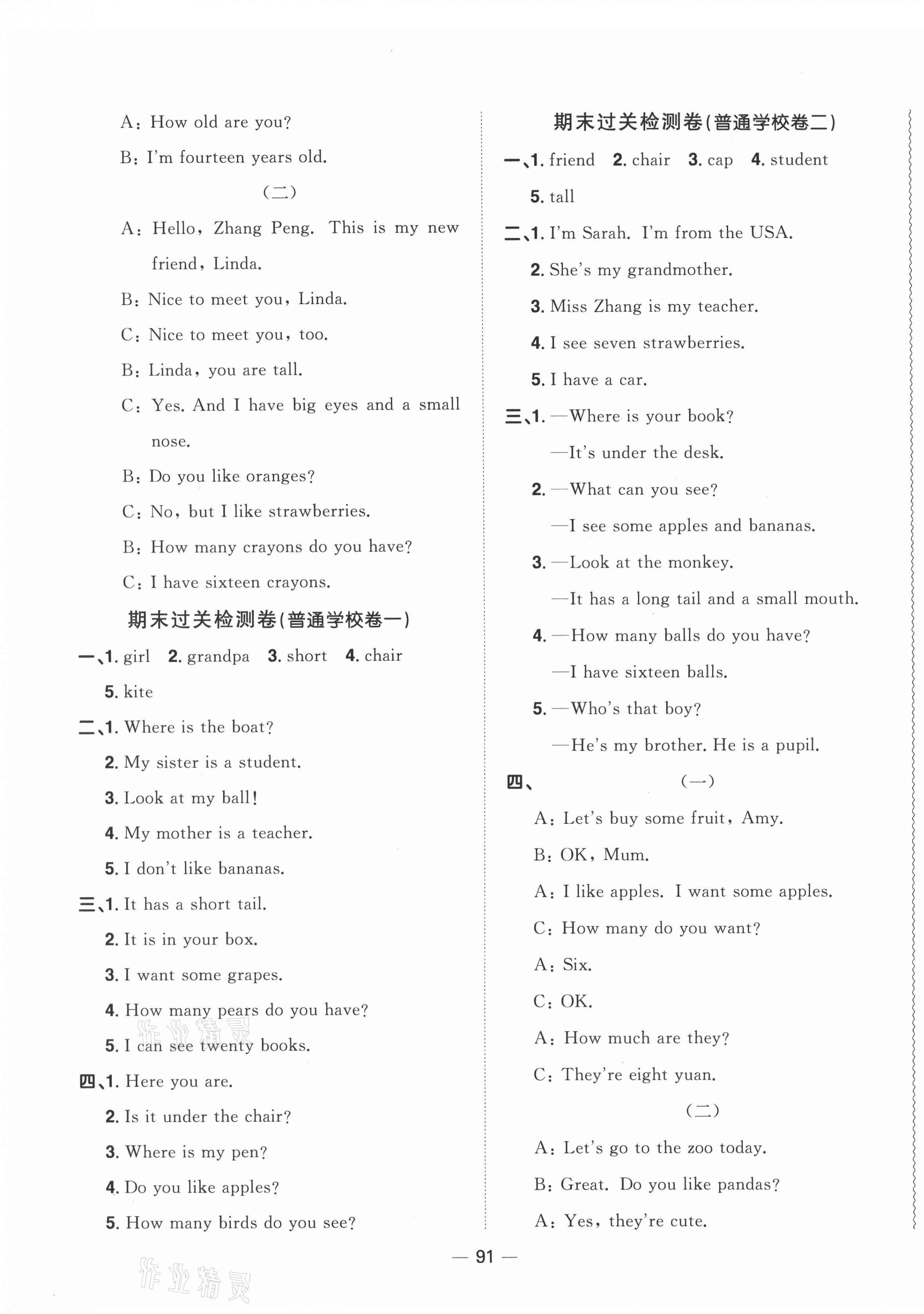 注:目前有些书本章节名称可能整理的还不是很完善,但都是按照顺序排列的,请同学们按照顺序仔细查找。练习册 2021年阳光同学一线名师全优好卷三年级英语下册人教PEP版山东专版 答案主要是用来给同学们做完题方便对答案用的,请勿直接抄袭。