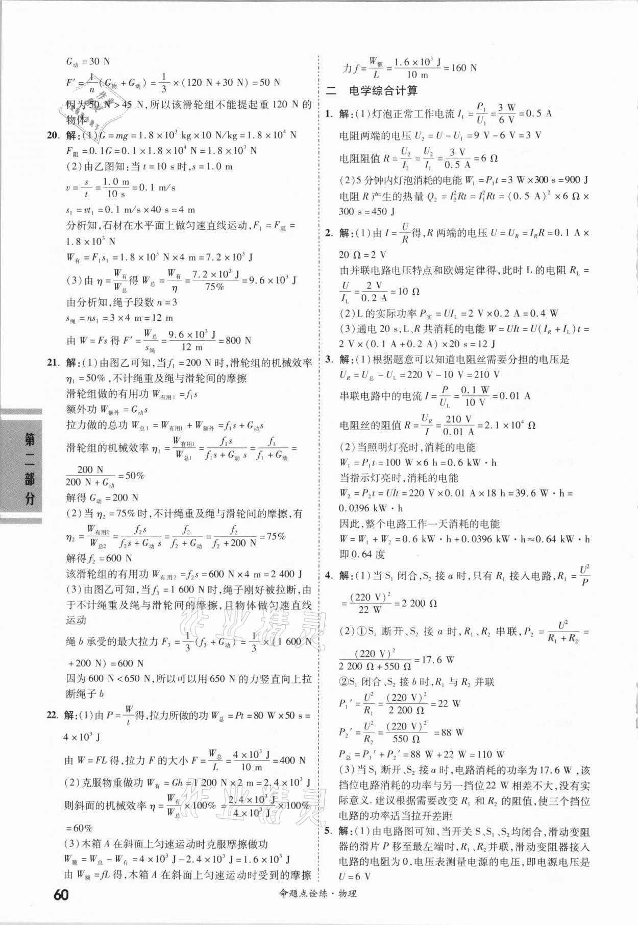 注:目前有些书本章节名称可能整理的还不是很完善,但都是按照顺序排列的,请同学们按照顺序仔细查找。练习册 2021年一战成名命题点诠练物理 答案主要是用来给同学们做完题方便对答案用的,请勿直接抄袭。