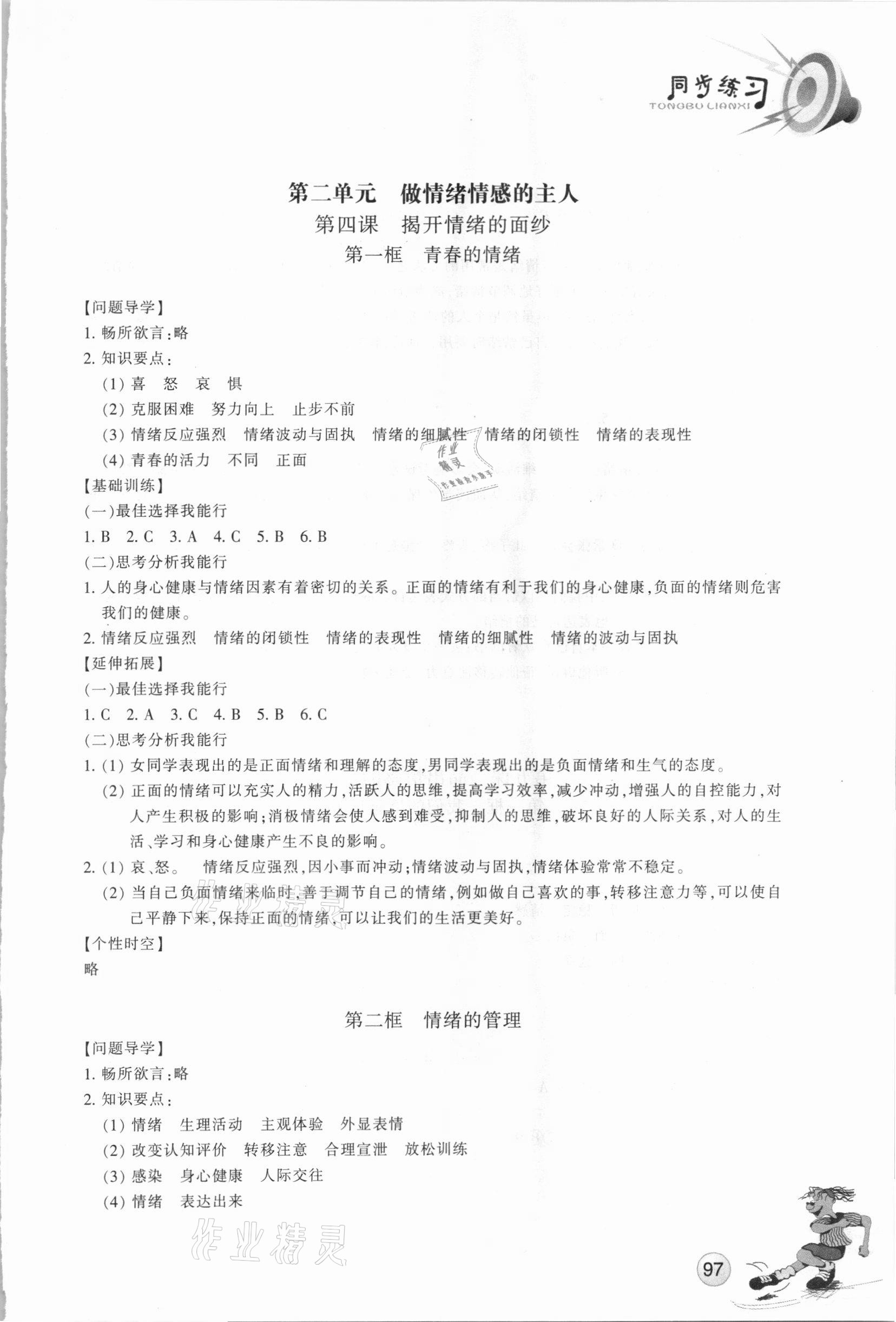 注:目前有些书本章节名称可能整理的还不是很完善,但都是按照顺序排列的,请同学们按照顺序仔细查找。练习册 2021年同步练习七年级道德与法治下册人教版浙江教育出版社 答案主要是用来给同学们做完题方便对答案用的,请勿直接抄袭。