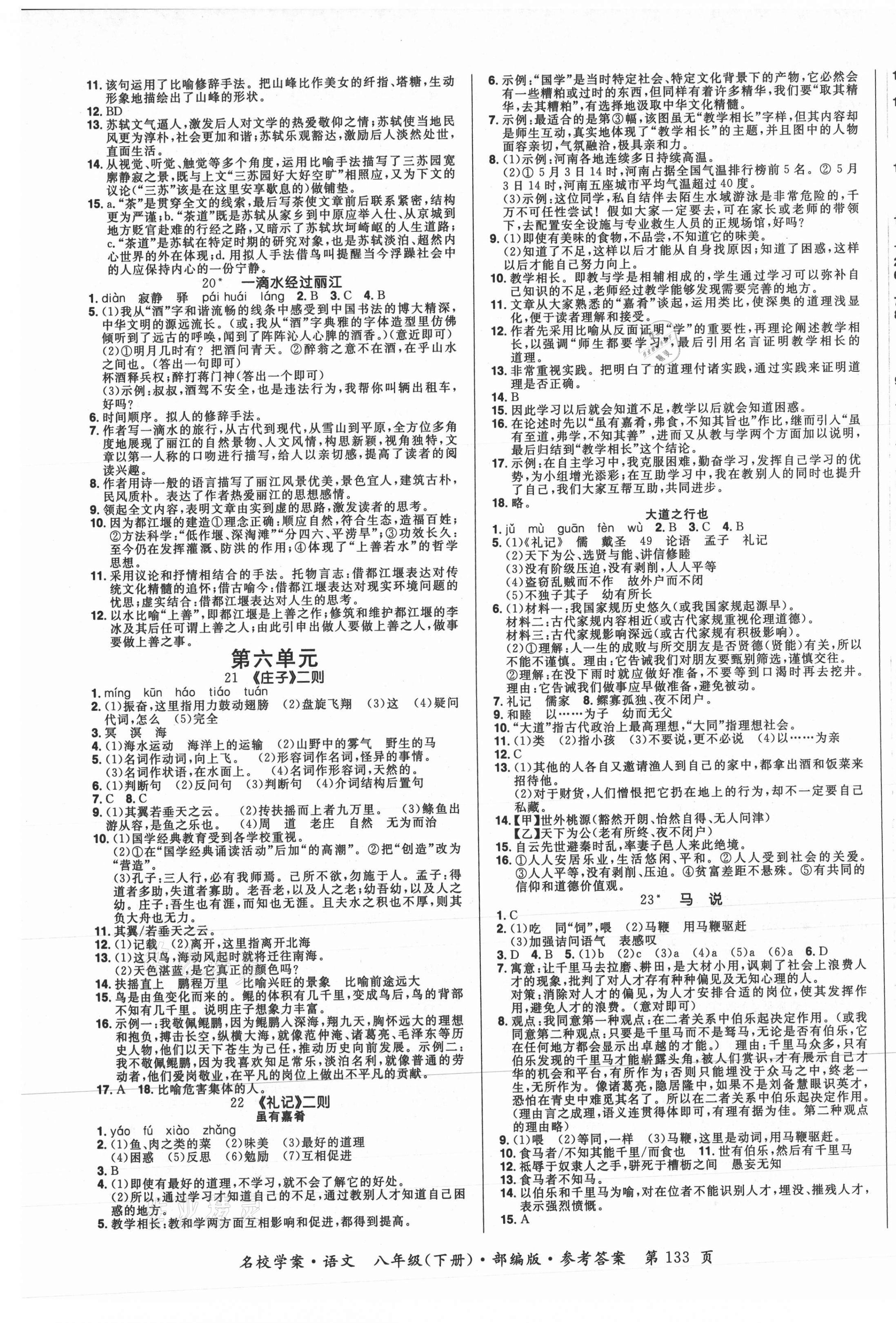 注:目前有些书本章节名称可能整理的还不是很完善,但都是按照顺序排列的,请同学们按照顺序仔细查找。练习册 2021年国华作业本名校学案八年级语文下册人教版 答案主要是用来给同学们做完题方便对答案用的,请勿直接抄袭。