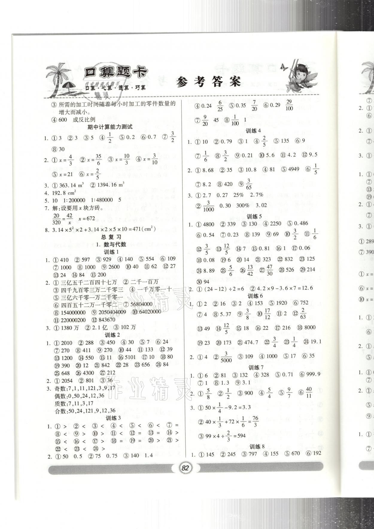 注:目前有些书本章节名称可能整理的还不是很完善,但都是按照顺序排列的,请同学们按照顺序仔细查找。练习册 2021年轻松练口算题卡六年级数学下册北师大版 答案主要是用来给同学们做完题方便对答案用的,请勿直接抄袭。
