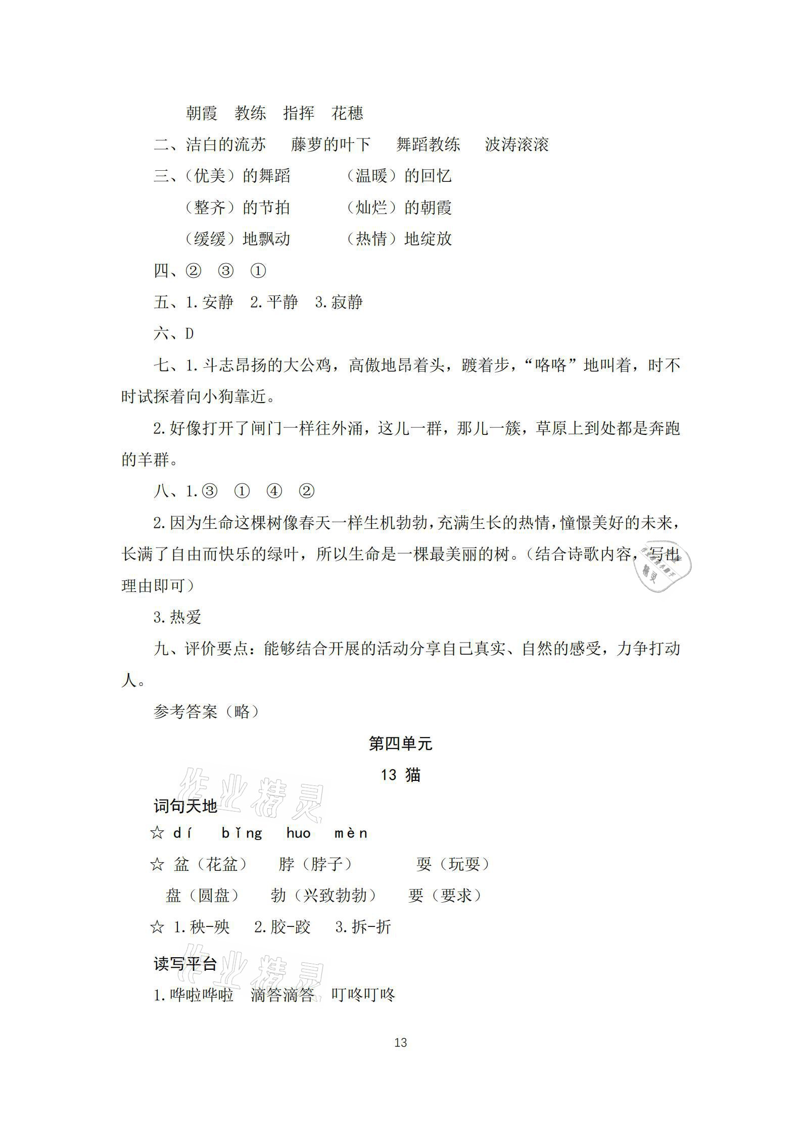 注:目前有些书本章节名称可能整理的还不是很完善,但都是按照顺序排列的,请同学们按照顺序仔细查找。练习册 2021年人教金学典同步解析与测评四年级语文下册人教版江西专版 答案主要是用来给同学们做完题方便对答案用的,请勿直接抄袭。