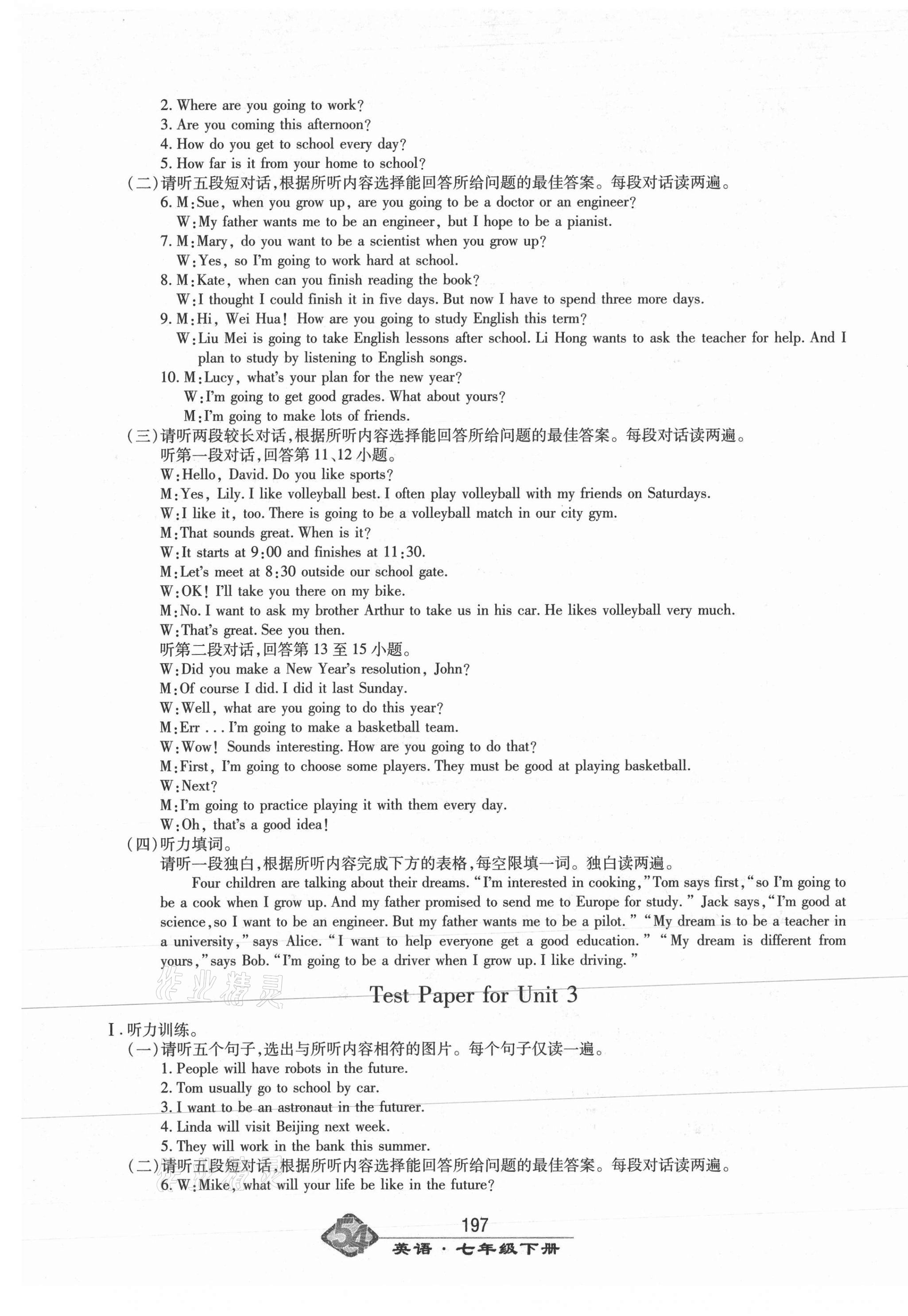 注:目前有些书本章节名称可能整理的还不是很完善,但都是按照顺序排列的,请同学们按照顺序仔细查找。练习册 2021年智慧学习七年级英语下册鲁教版54制明天出版社 答案主要是用来给同学们做完题方便对答案用的,请勿直接抄袭。